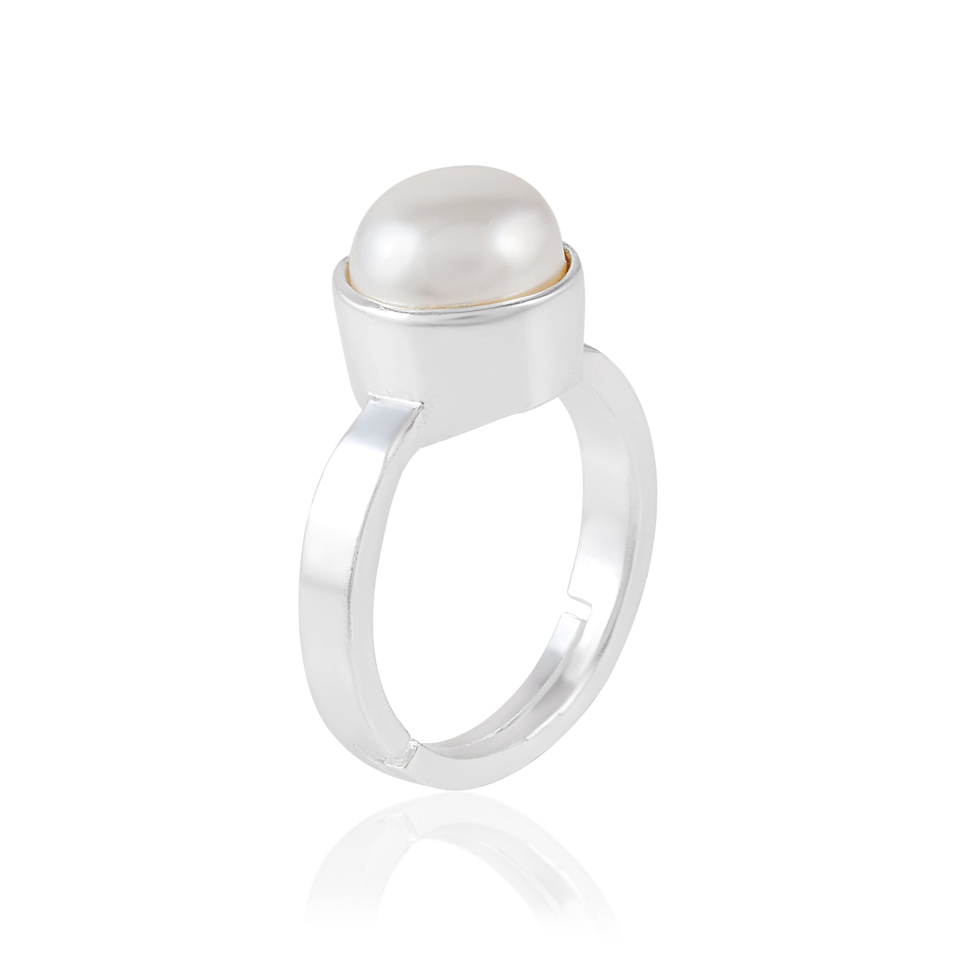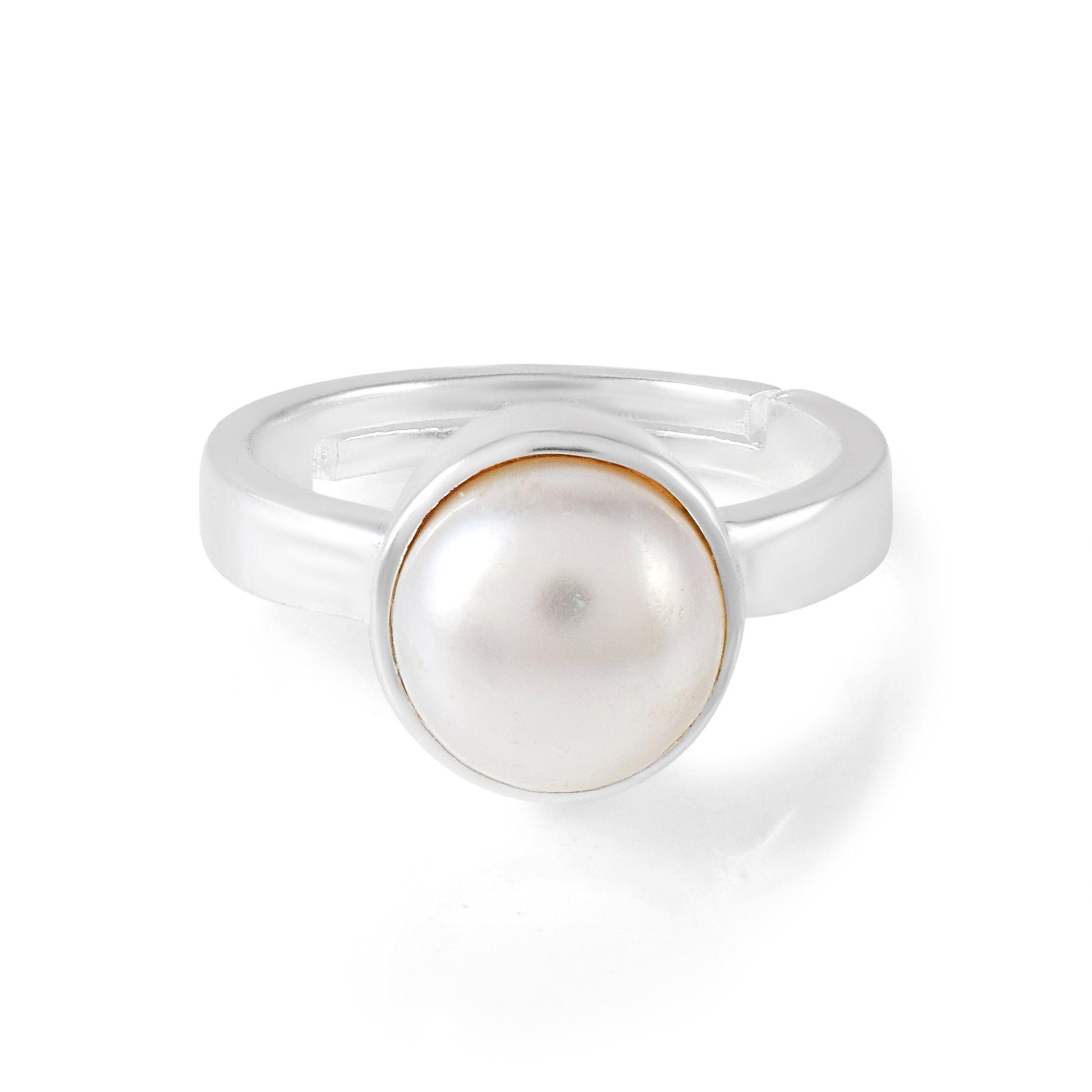 Pure Silver 7.25 Ratti white Pearl finger ring (ORRR3508)