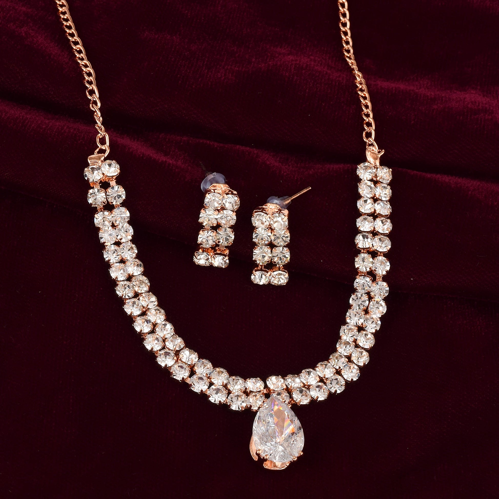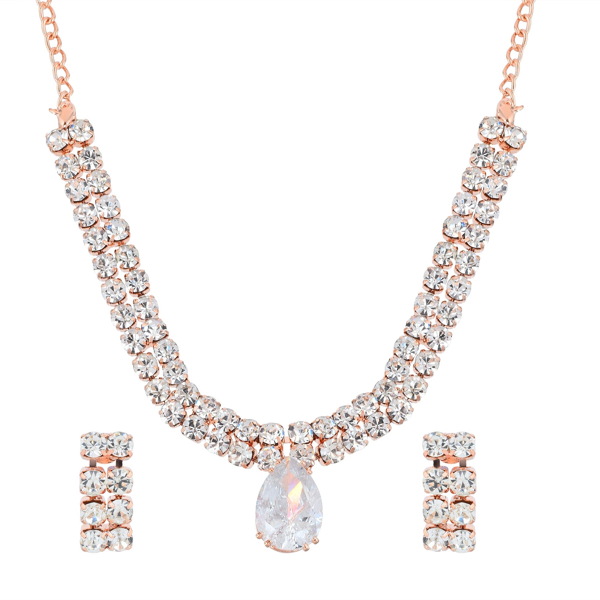 Rose Goldplated Imitation Diamond Fashion Luxe necklace set Women