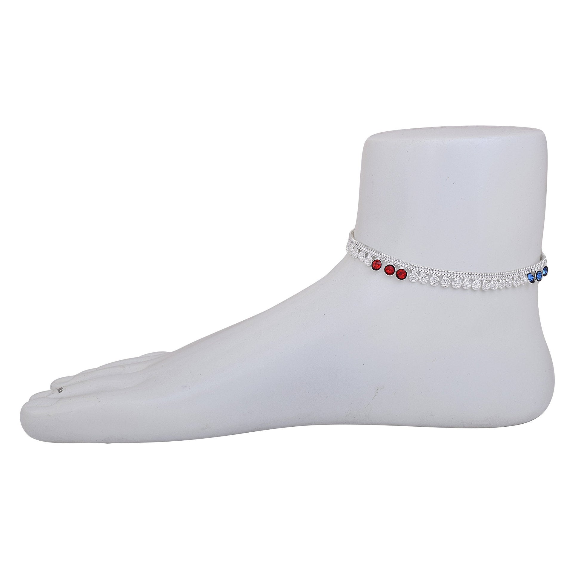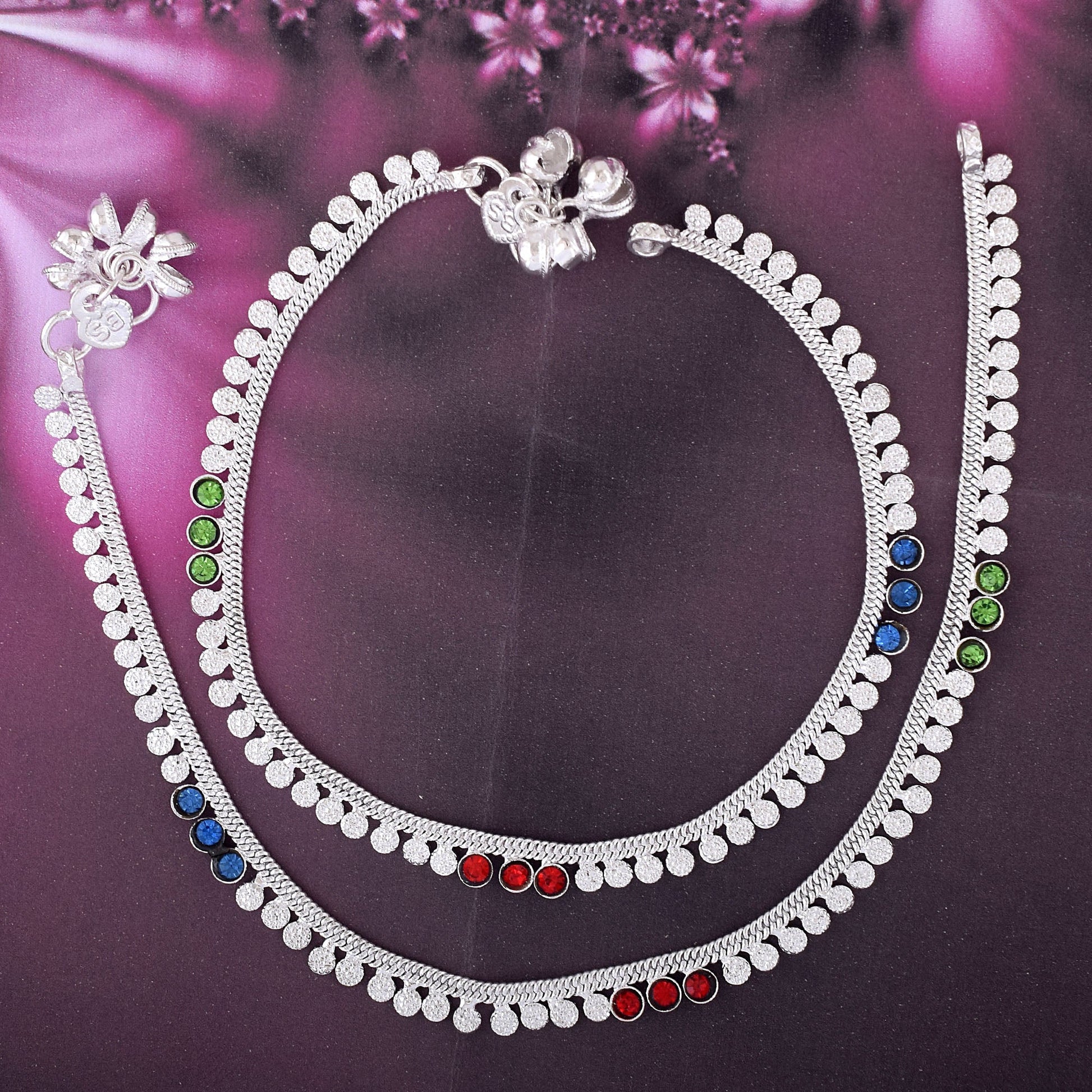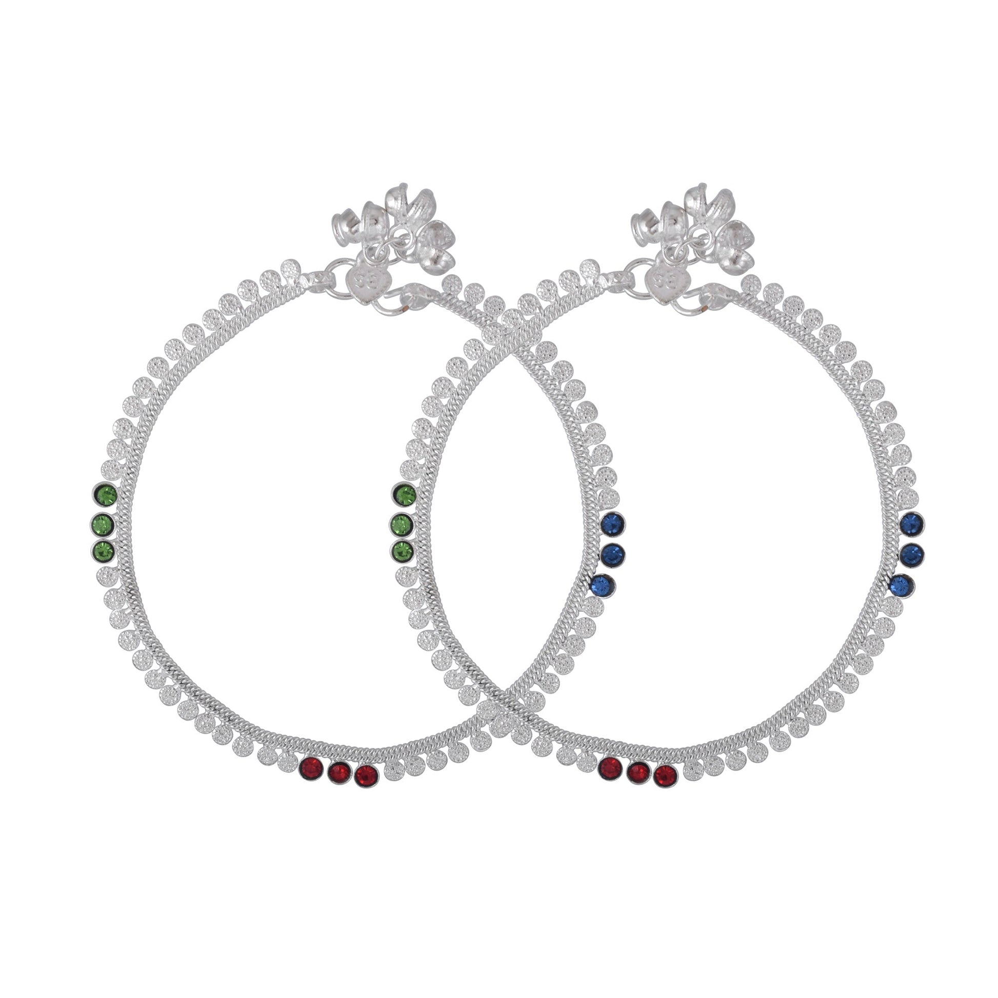 Silver plated Colourful Crystal Stylish simple sober traditional payal,pajeb Anklet