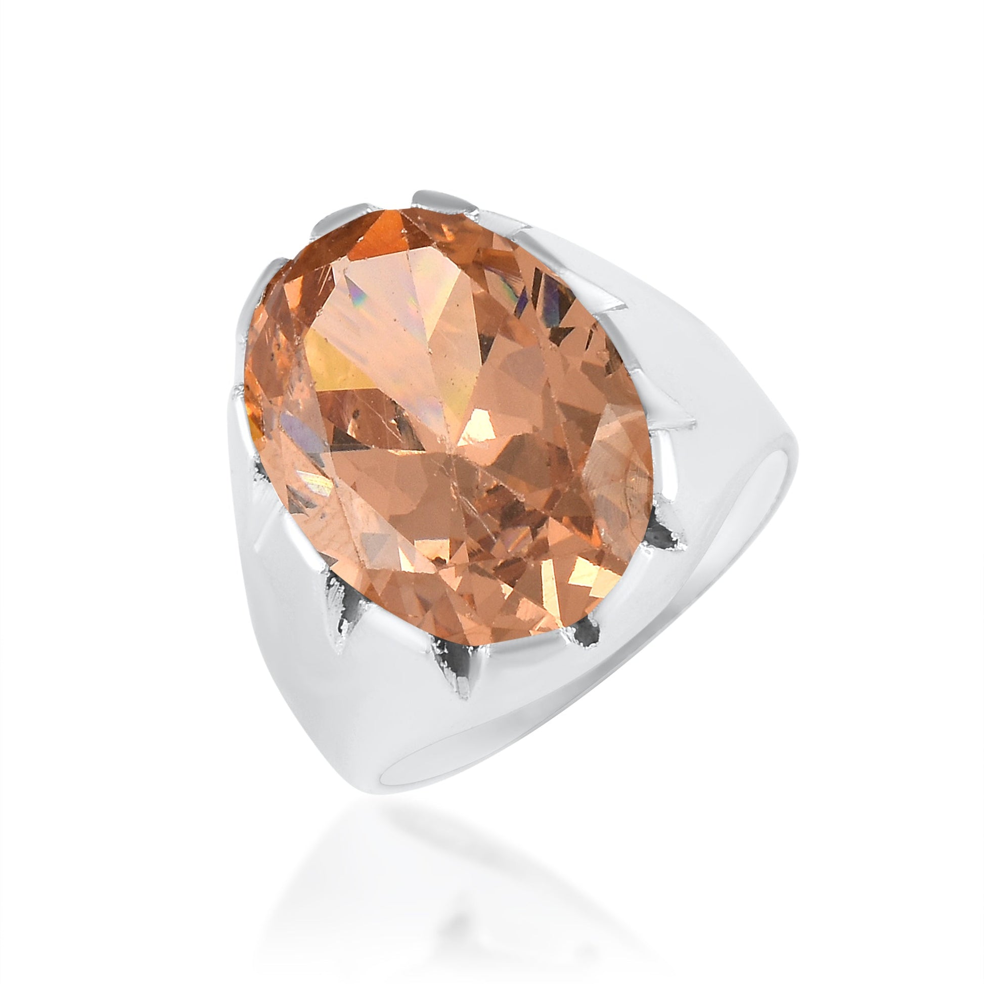 Silverplated Thick and Heavy Peach Quartz Fingerring Men