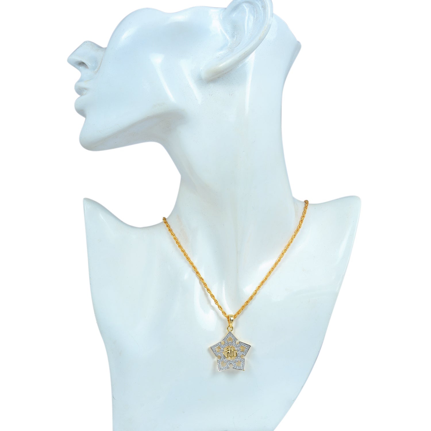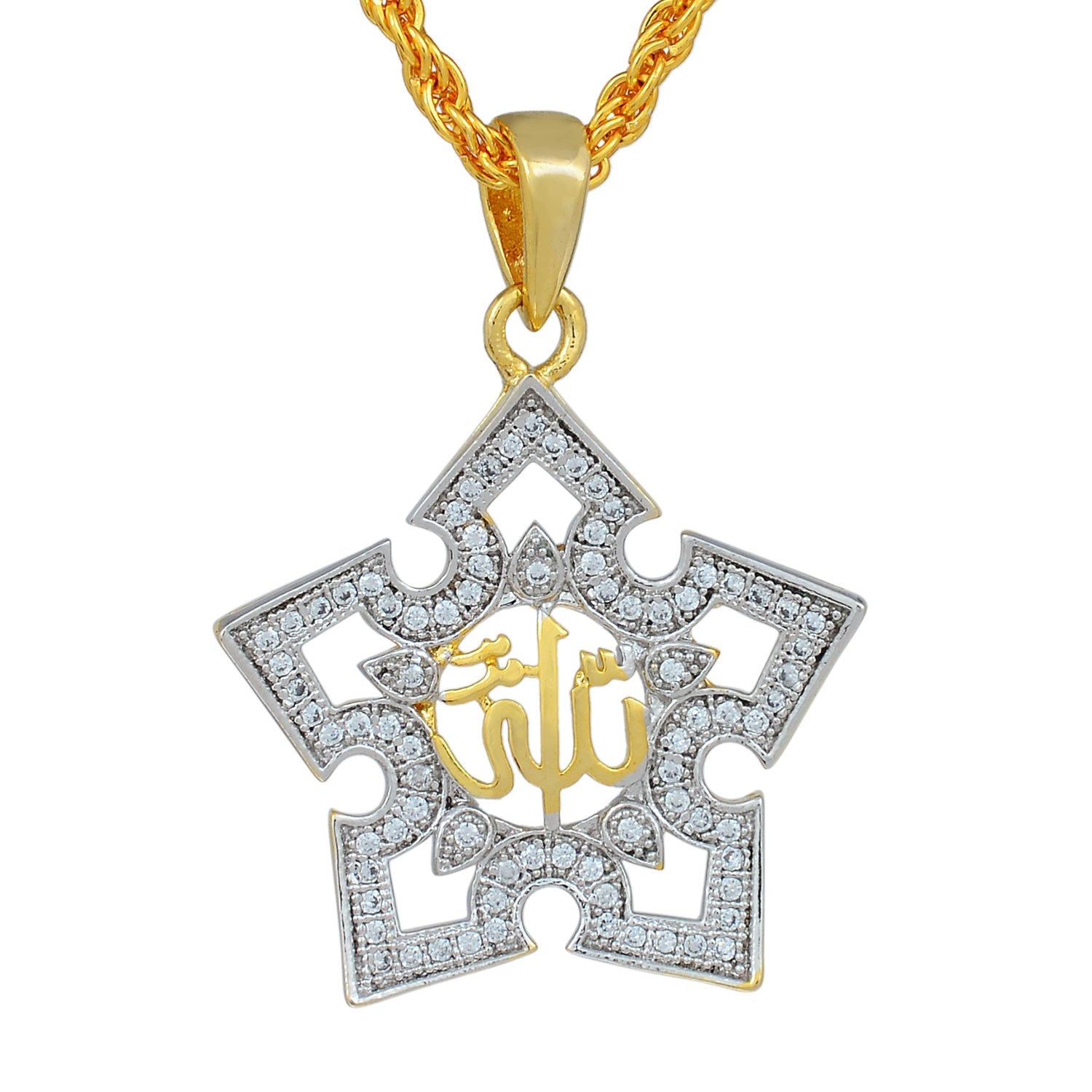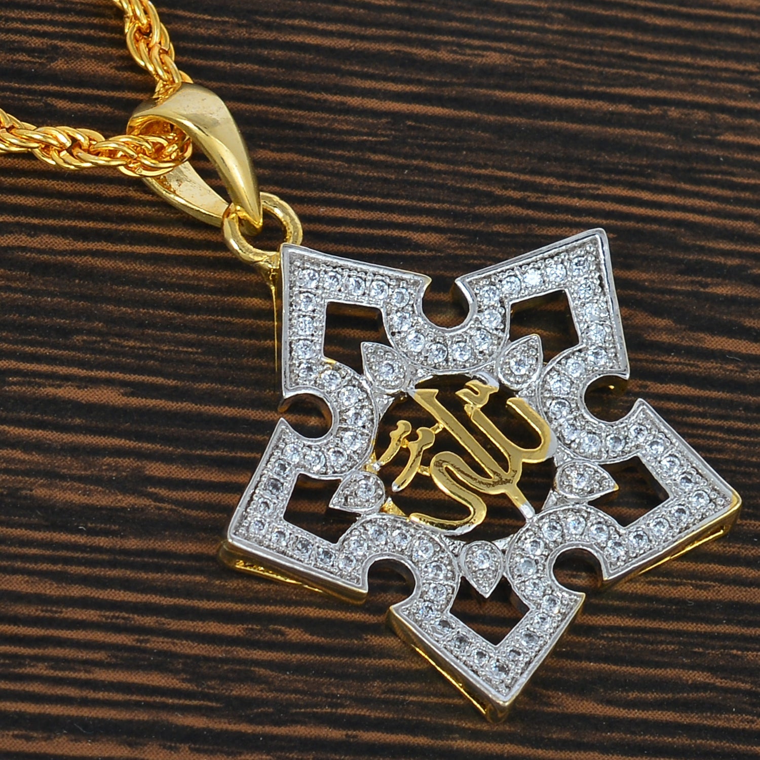 Gold plated CZ studded, Allah word, pentagon shape muslim jewellery chain pendant necklace