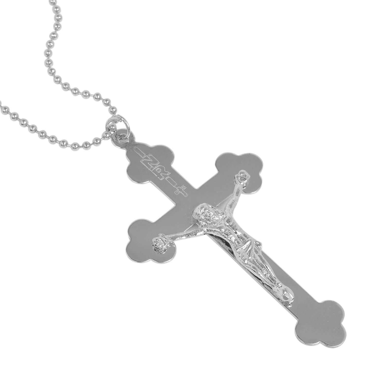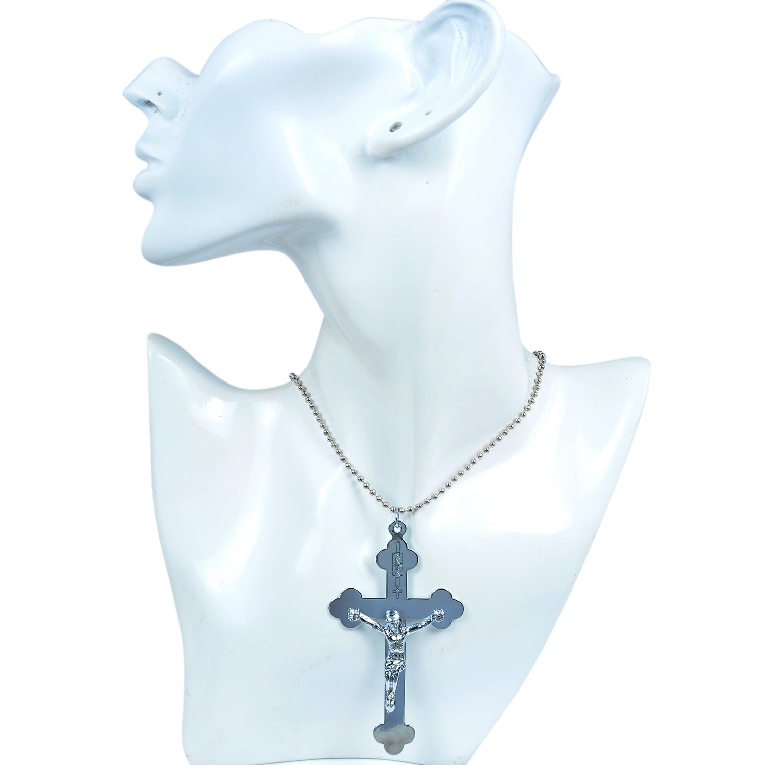 • Material: 316L top Grade anti-allergy Stainless Steel; Size of Crucifix: 3.25inch x 2 Inch. Length of Pendant: 33 Inches. Weight of Pendant Approx 21 gms. Stainless steel 30 Inch long chain.