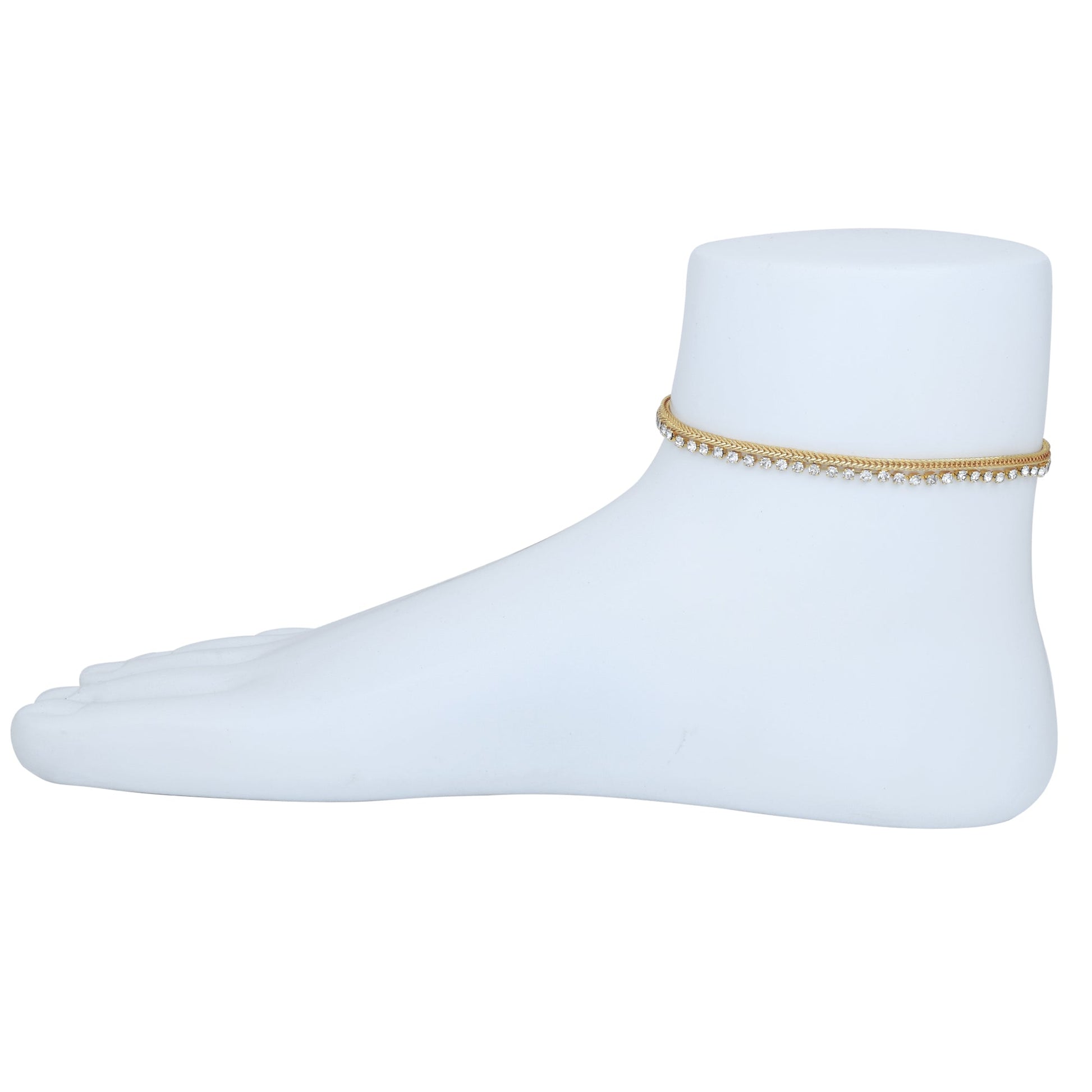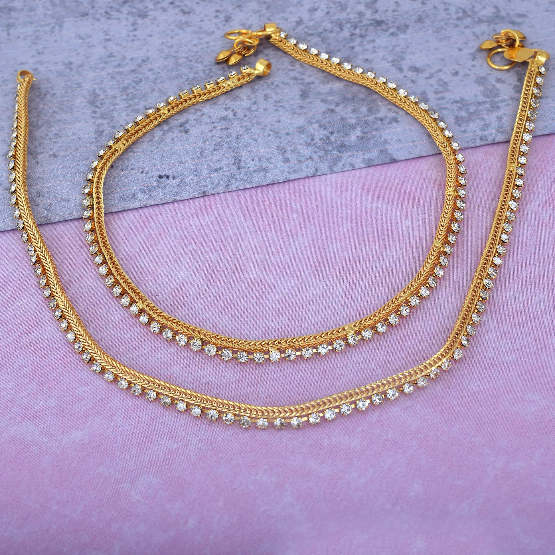 Brass, 24KT, yellow Gold plated, CZ studded Stylish Payal