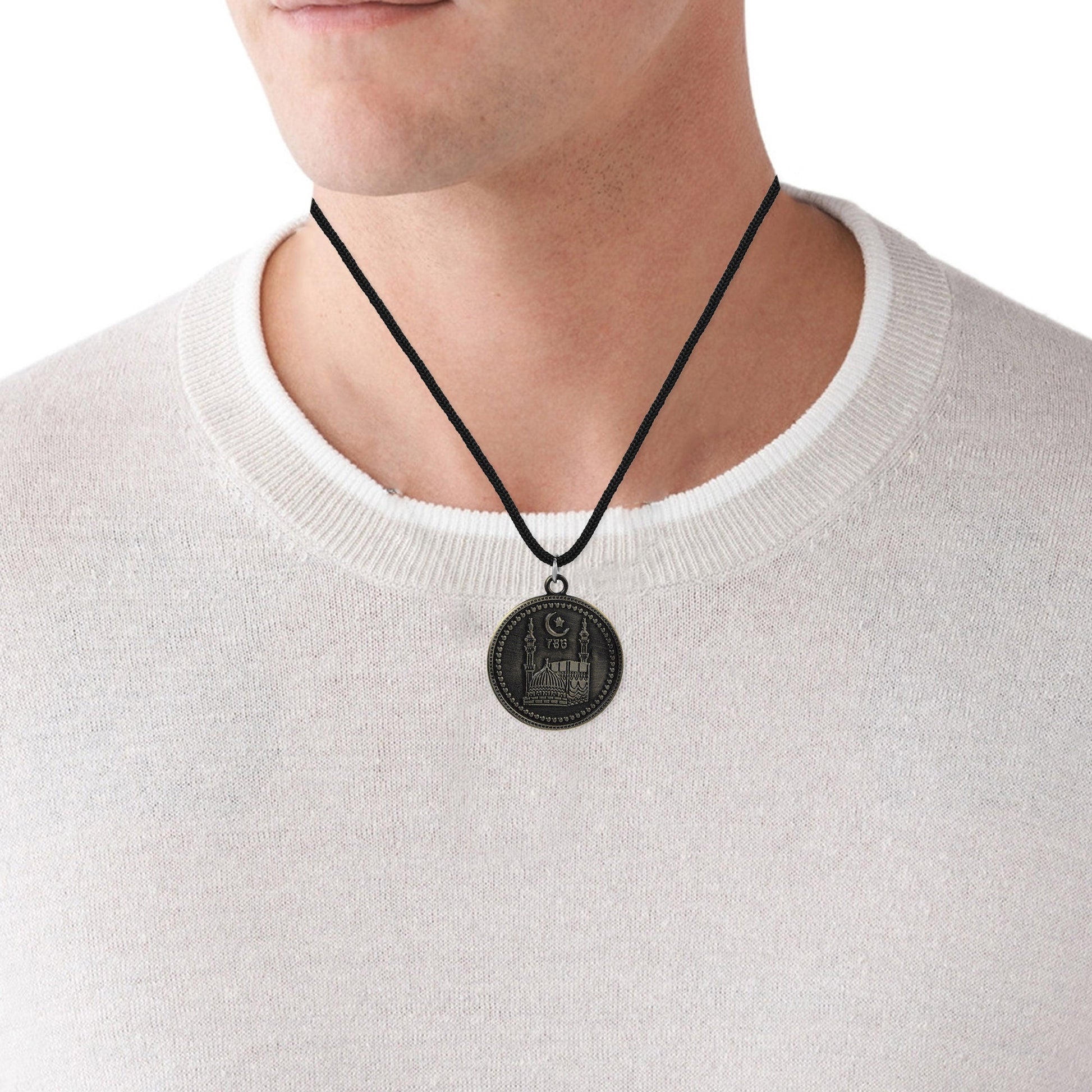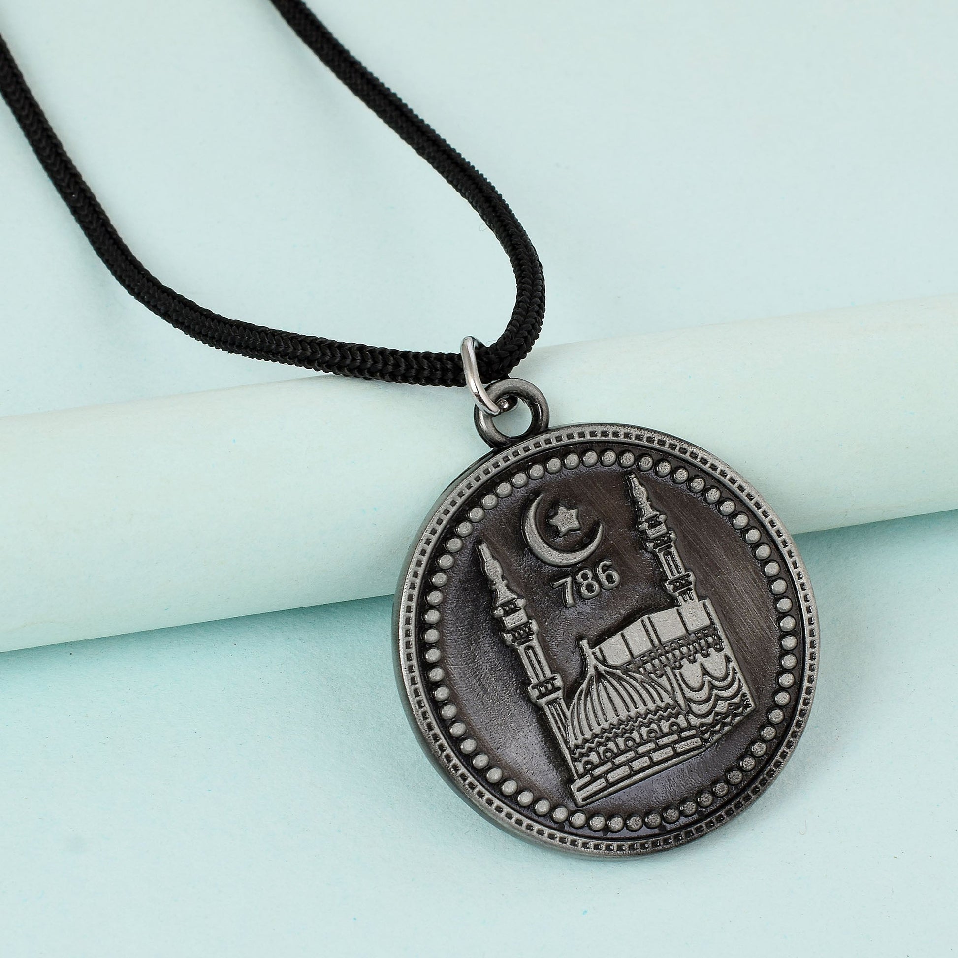 Brass Antique Silver finish Holy Mecca Madina Muslim Chain pendant