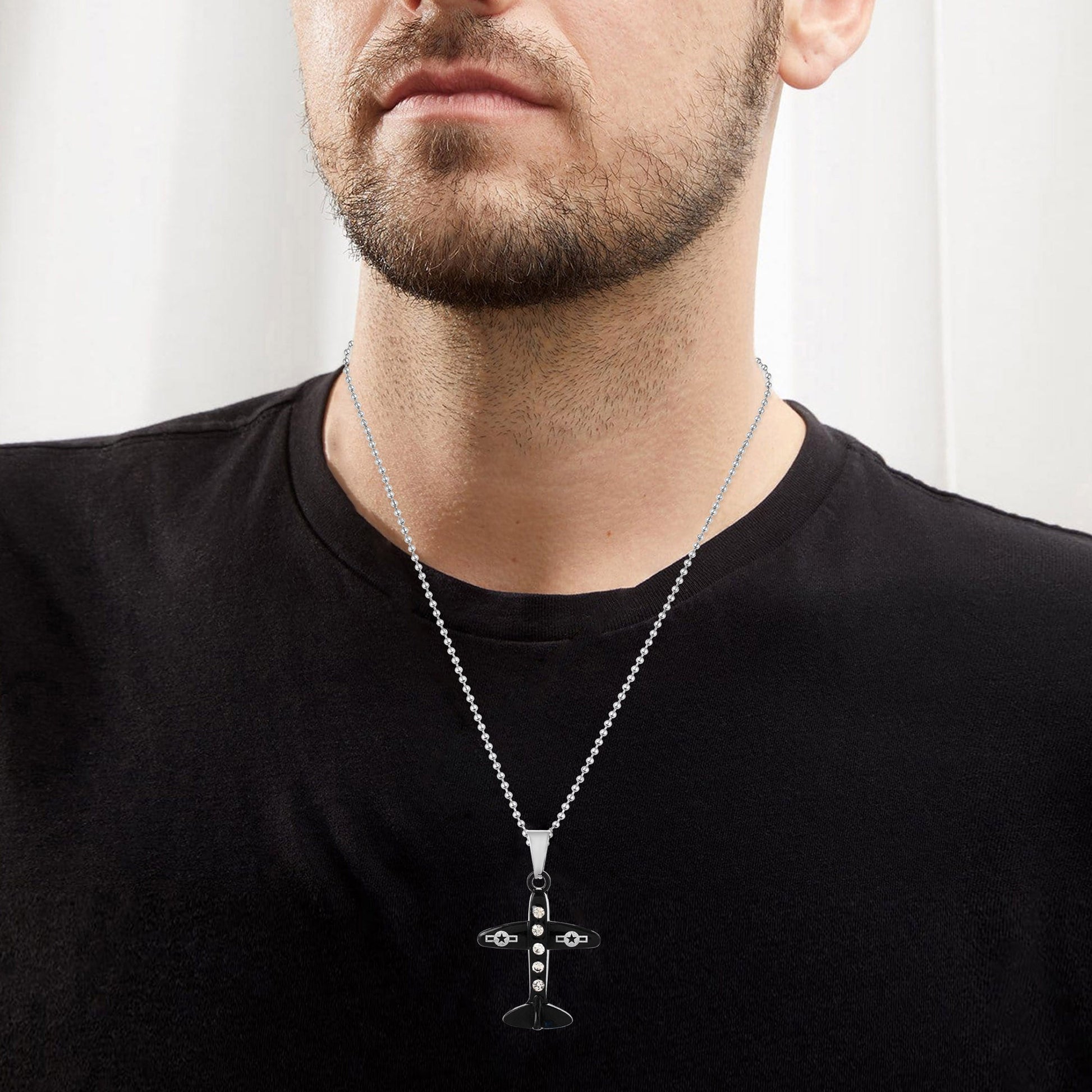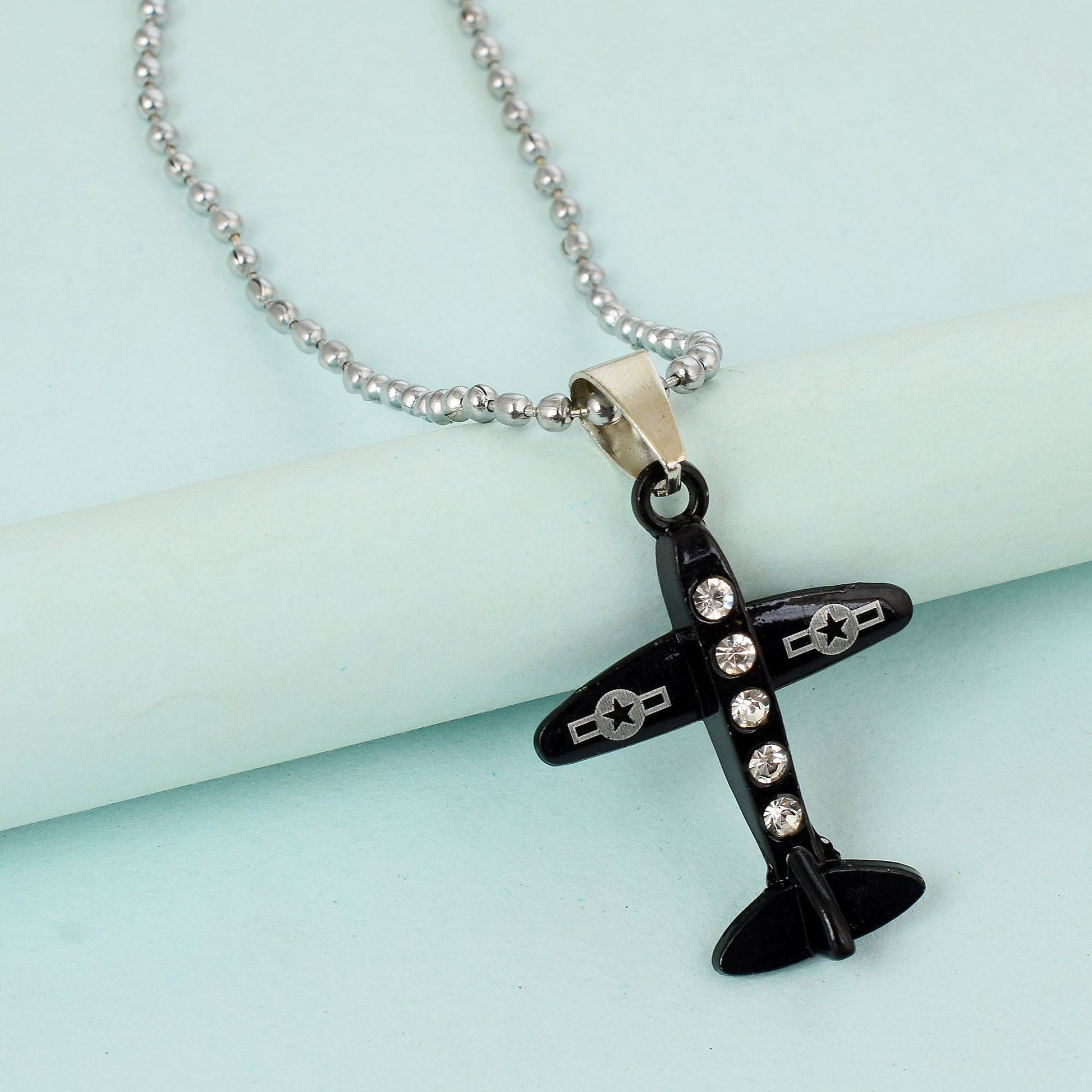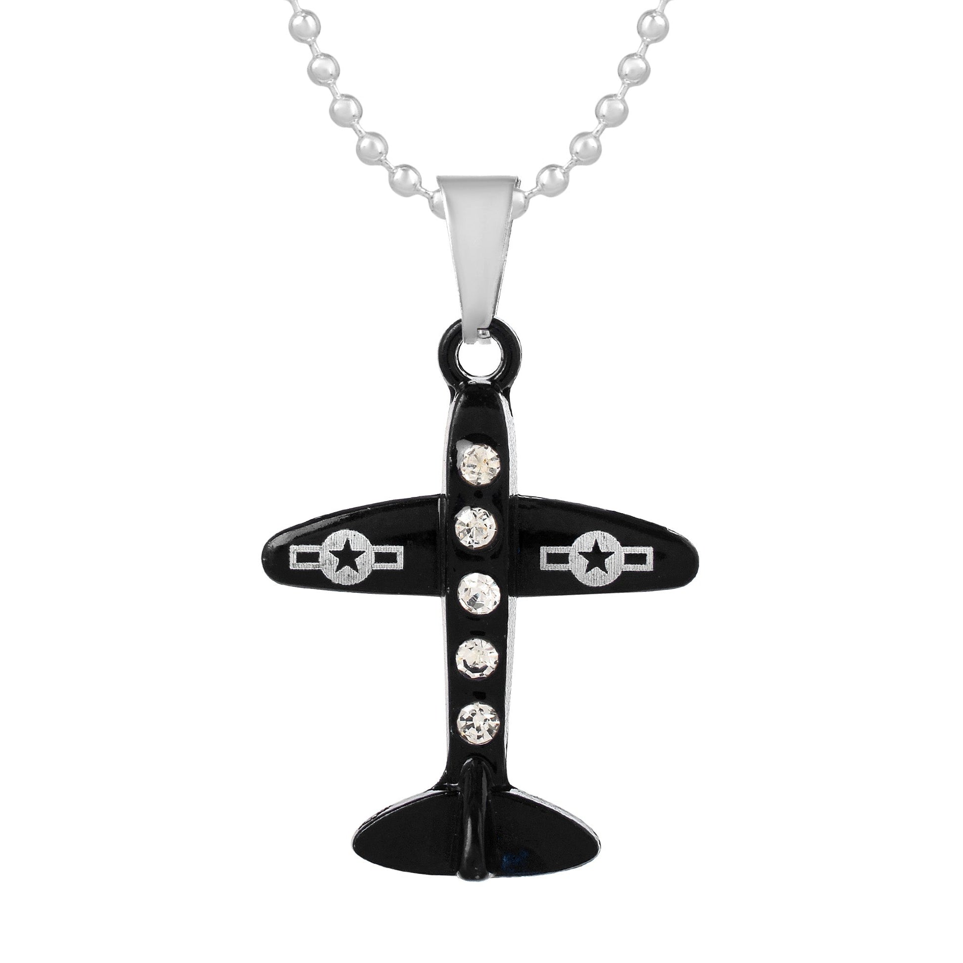 Brass Black Coated CZ Aeroplane design Fashion pendant Unisex