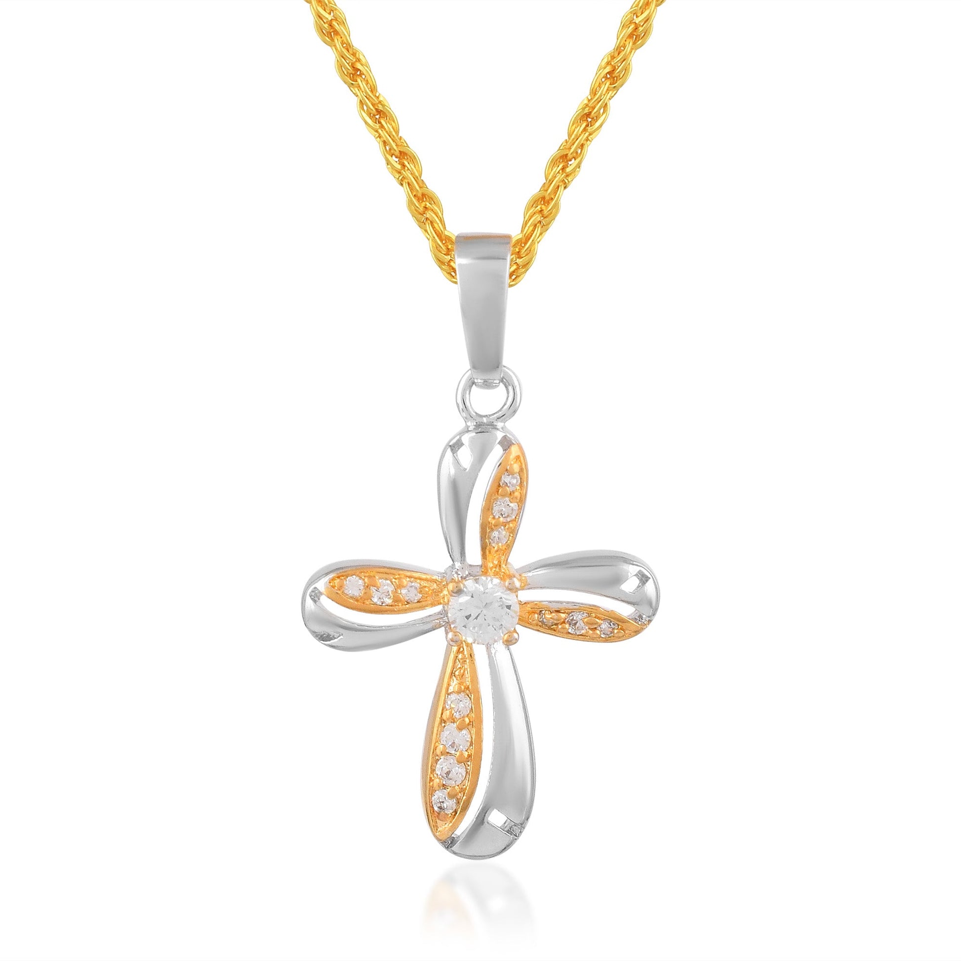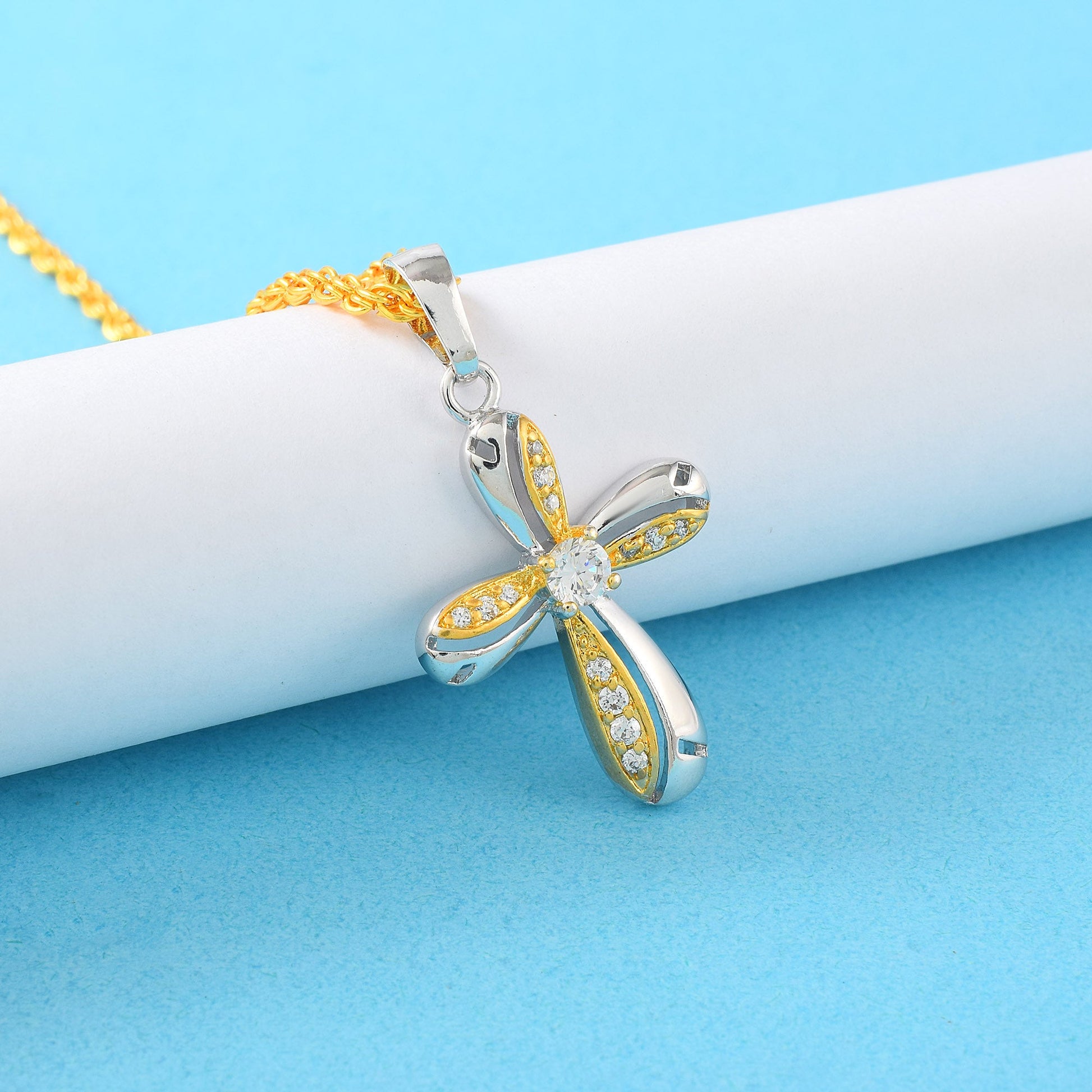 Brass Dual tone Gold & Silverpated Imitation Diamond Jesus Chrsitian Cross pendant