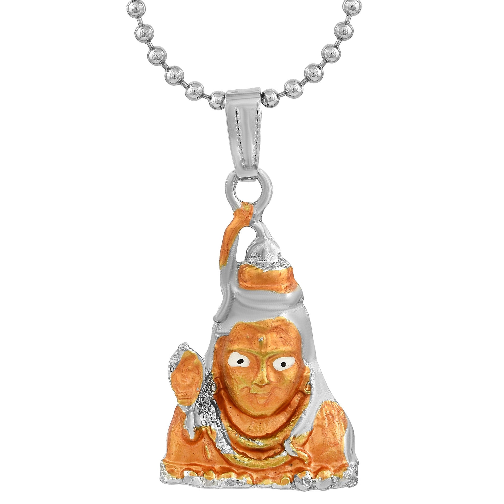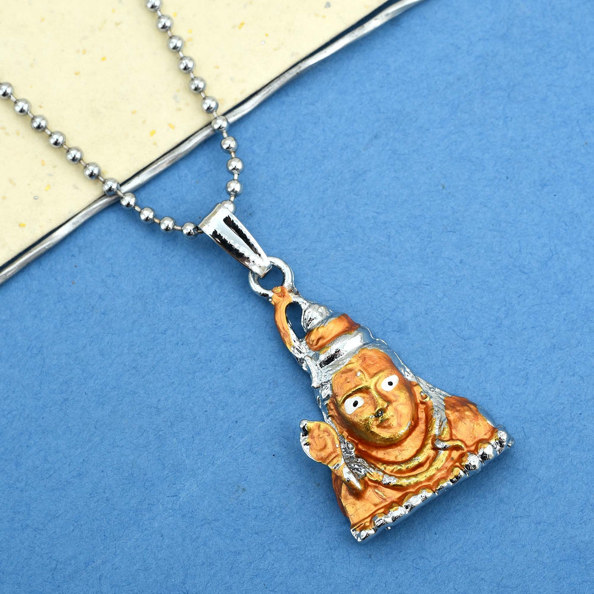 • Gerua colour Mahadev Shiv Pendant. Comes with 30 Inch long Steel ball chain.