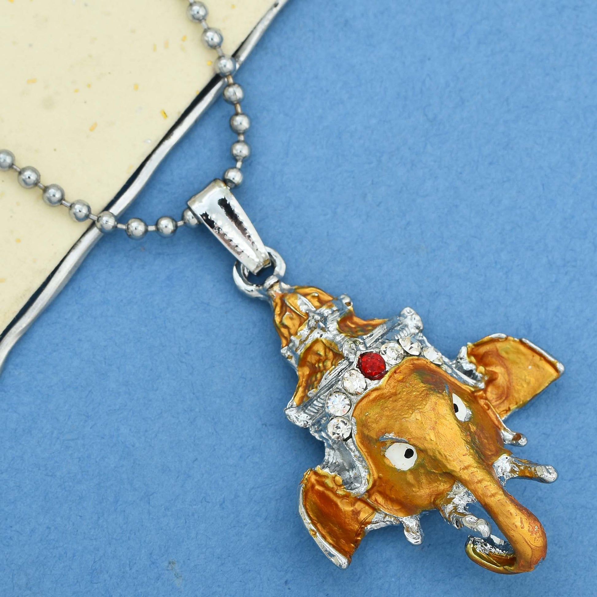 Brass Gerua CZ Ganesh Ganpati pendant Men Women
