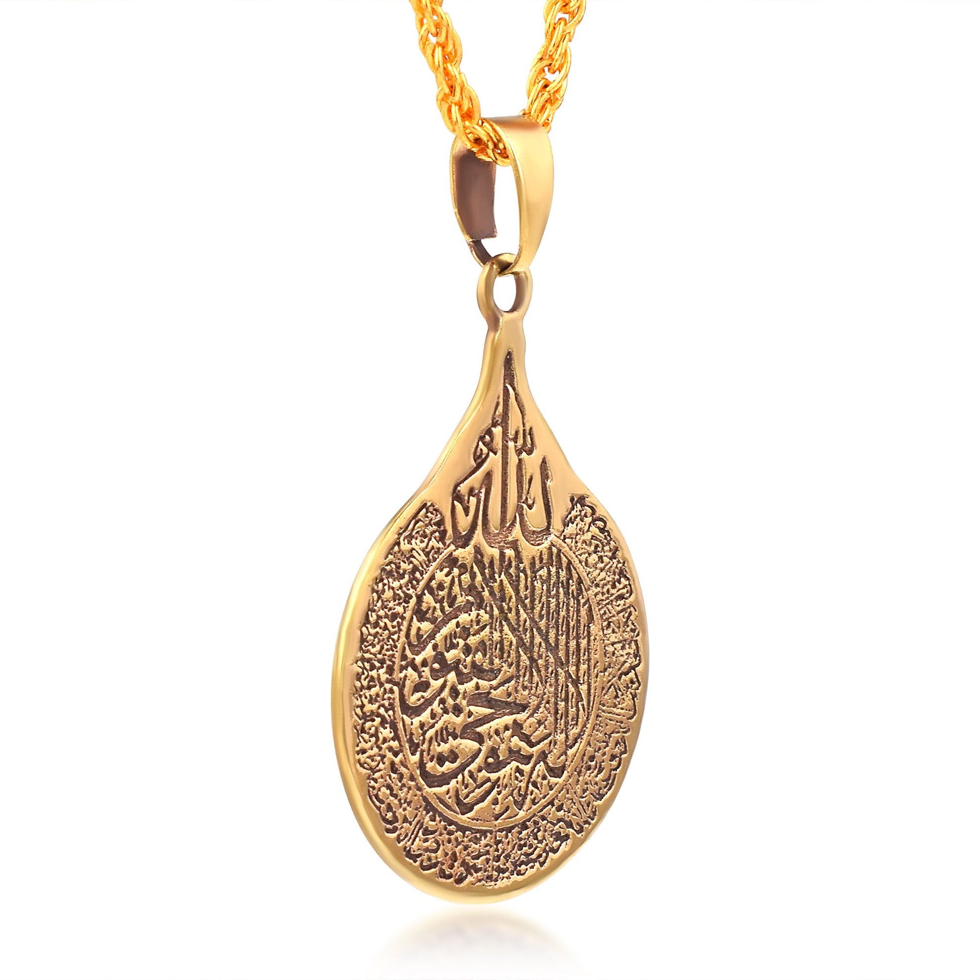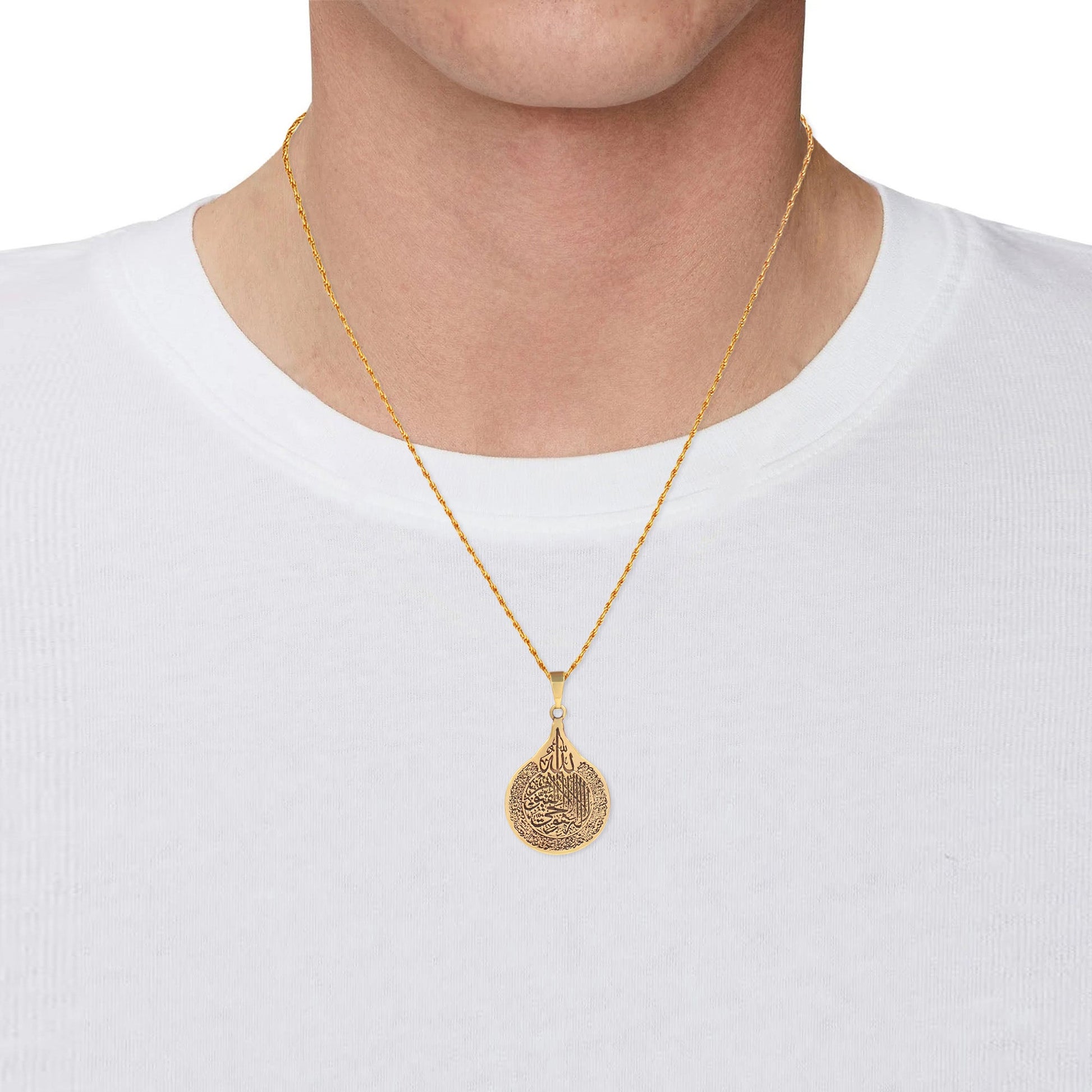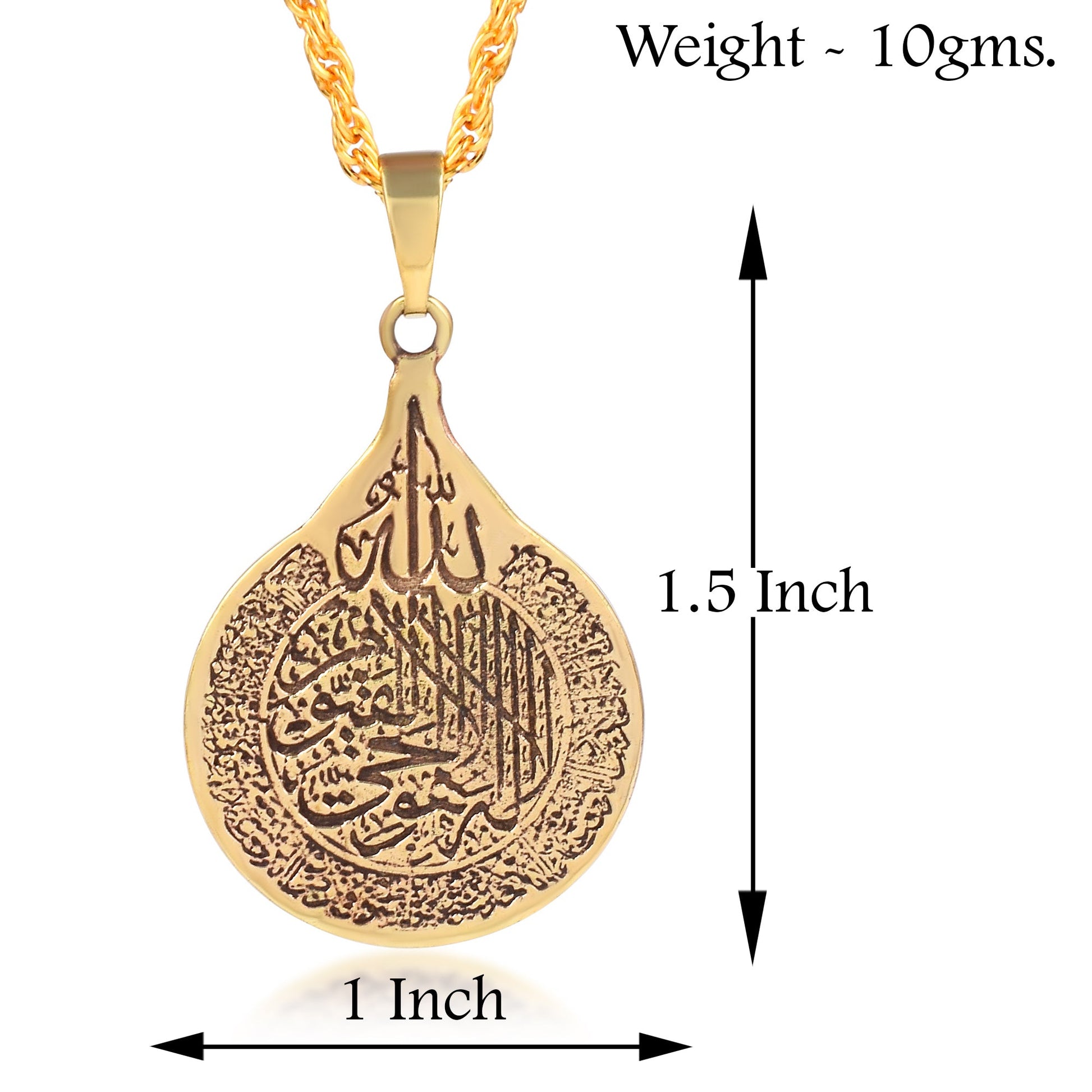 Brass Goldplated Allah Quran Ayatul Kursi Mulsim Islamic Chain Pendant