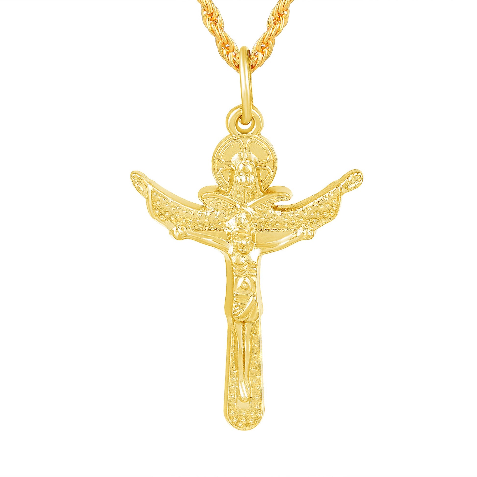 Brass Goldplated Arrow Cross Jesus flying to Heaven Cross Pendant