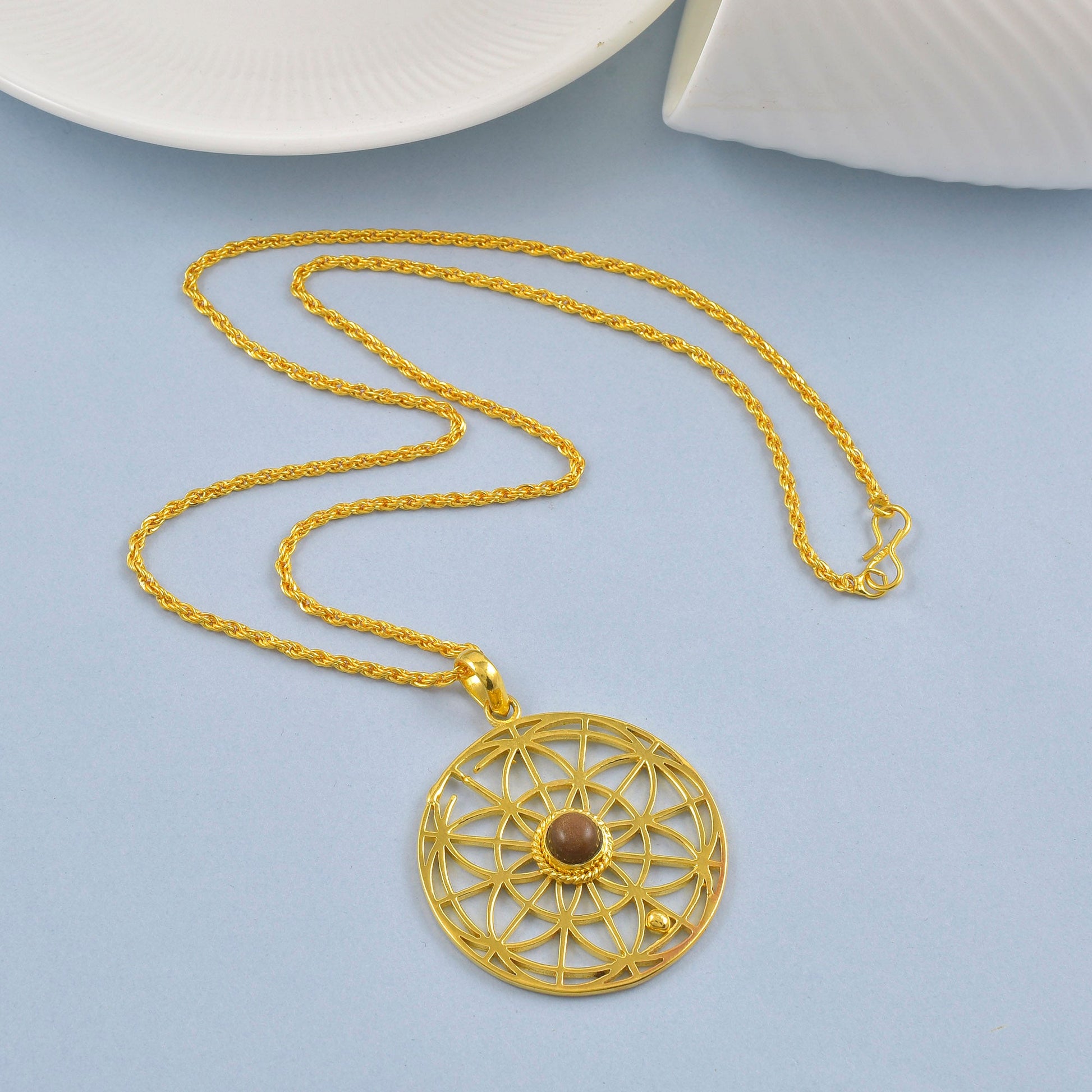Brass Goldplated Cats Eye Lehsuniya Chakra Pendant