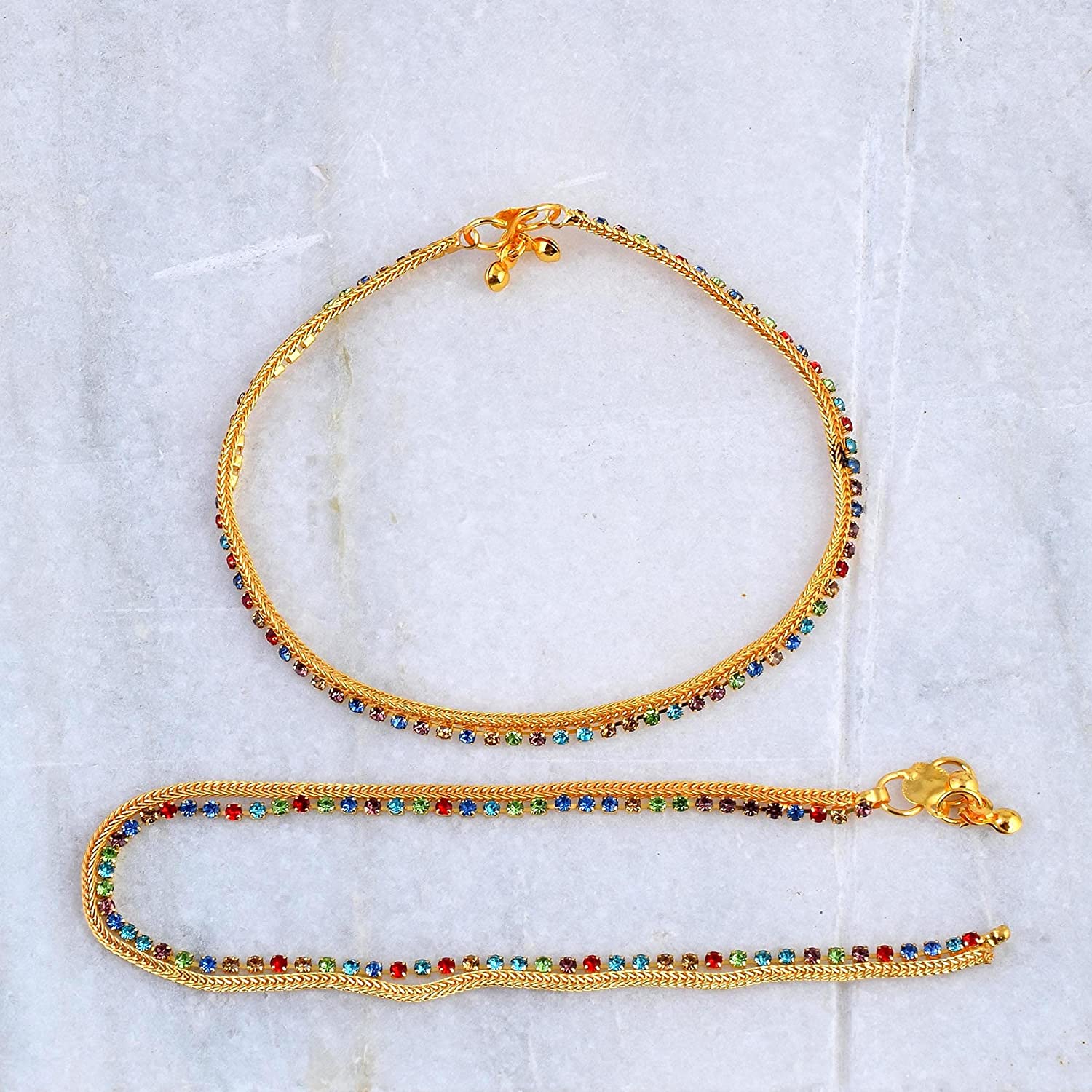 Brass Goldplated Multicolour CZ Traditional Payal Pajeb Fashion Anklet Ethnic Women