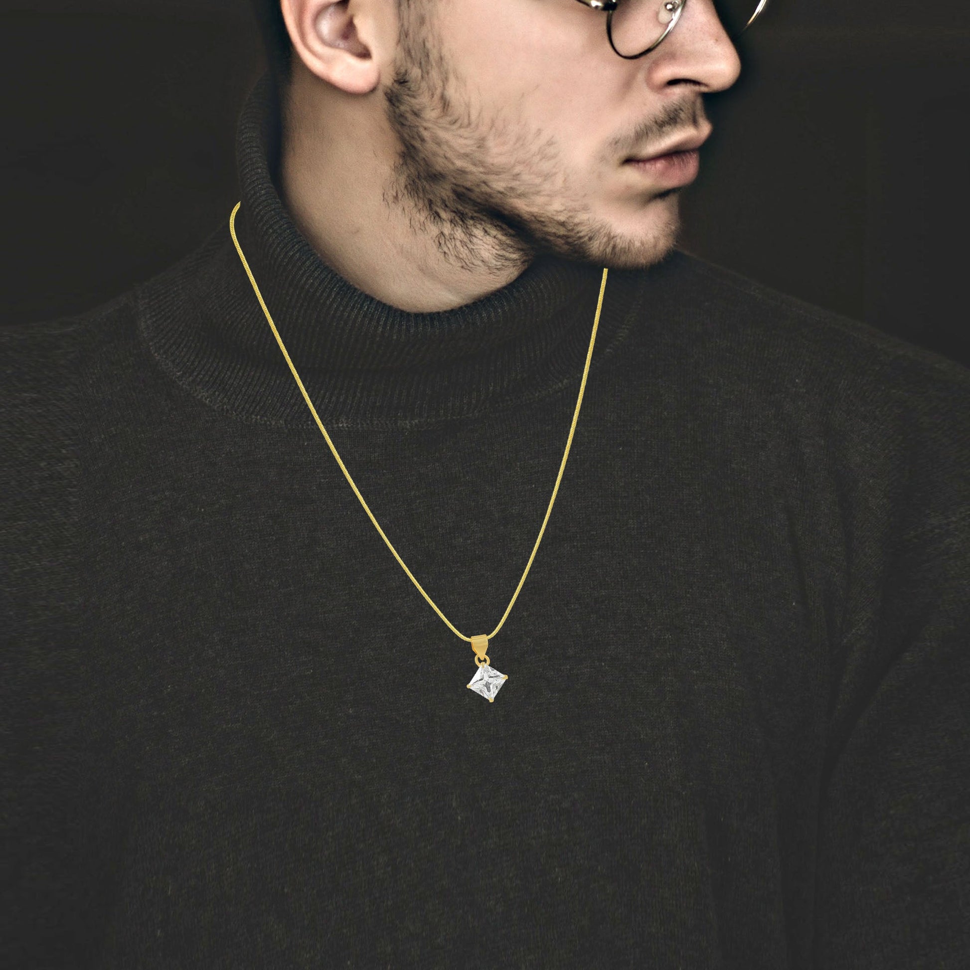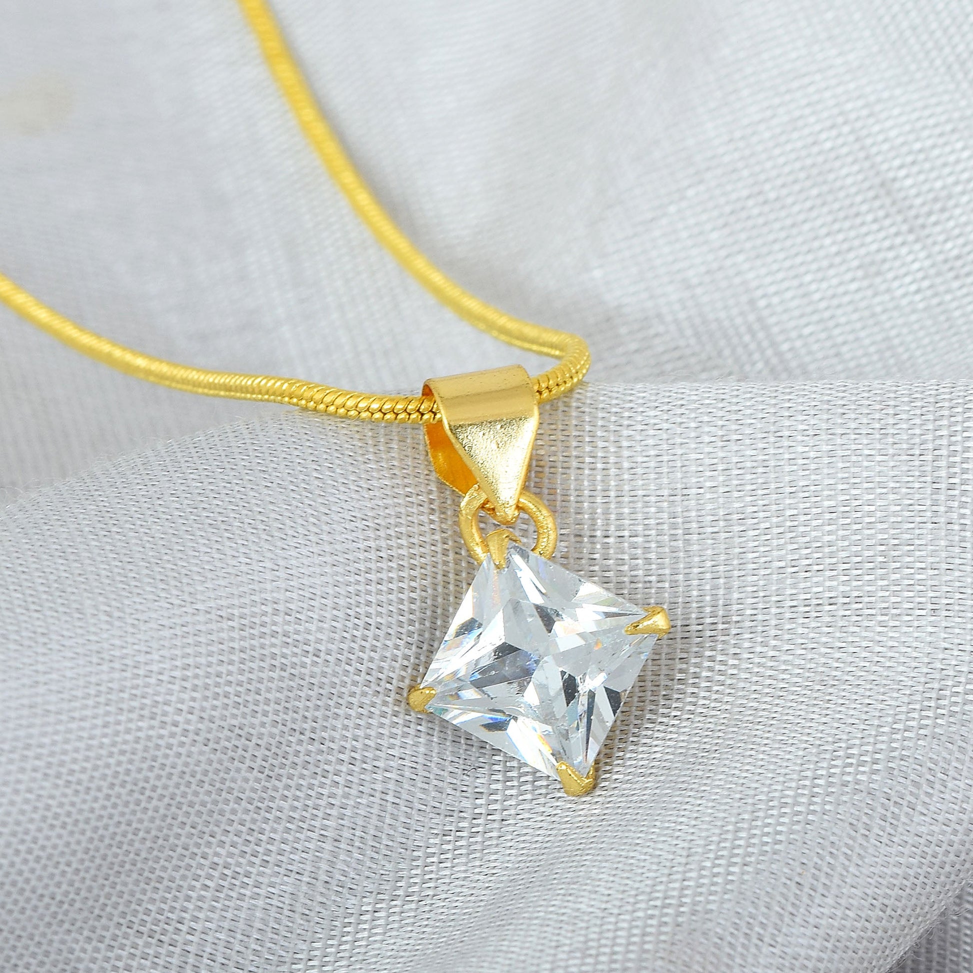 Brass Goldplated 10mm Princess Cut Square Shaped Imitation Diamond Fashion Pendant