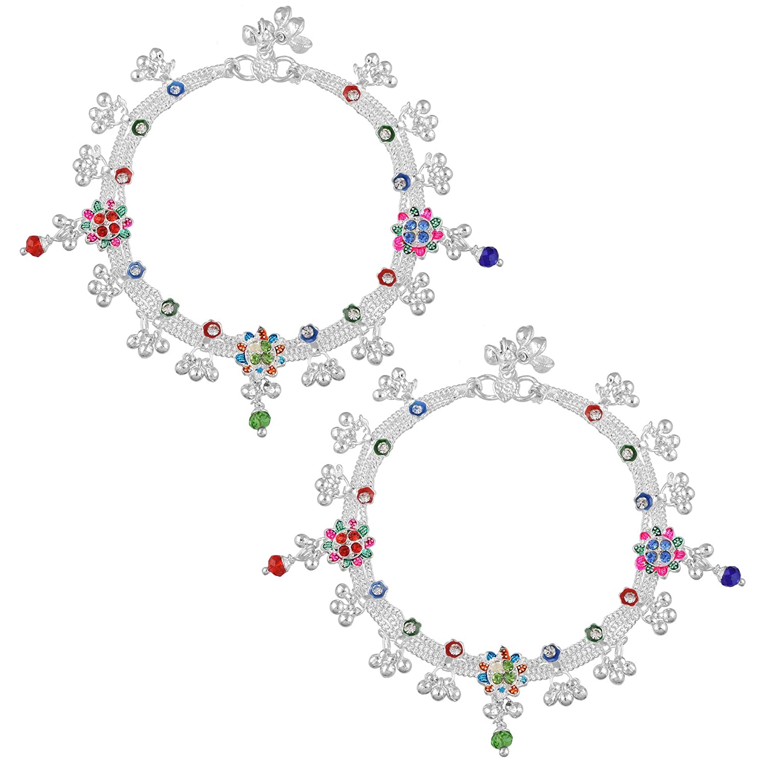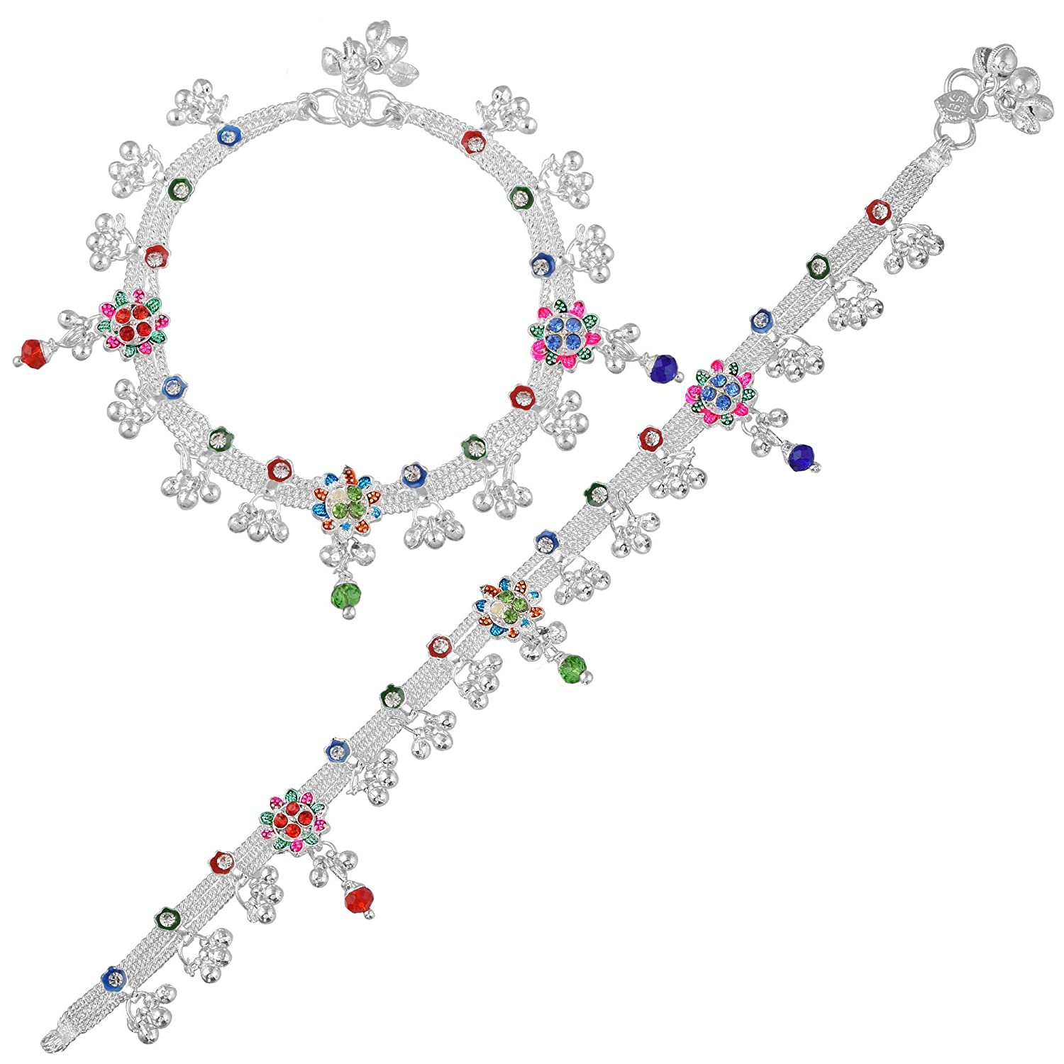 Brass Silverplated Colourful Beaded Ethnic Payal Pajeb Anklets