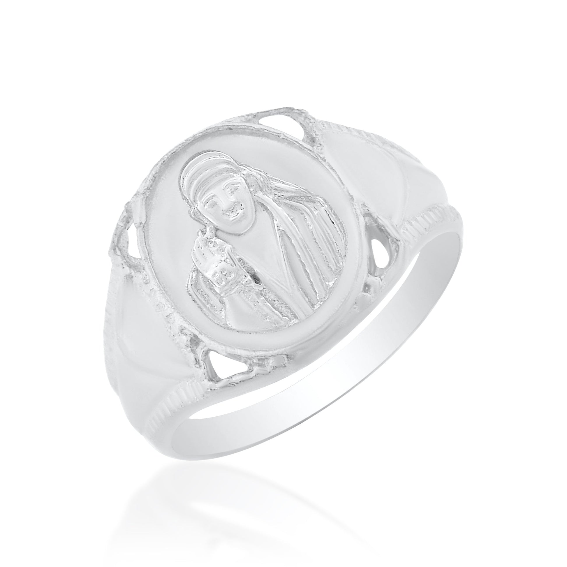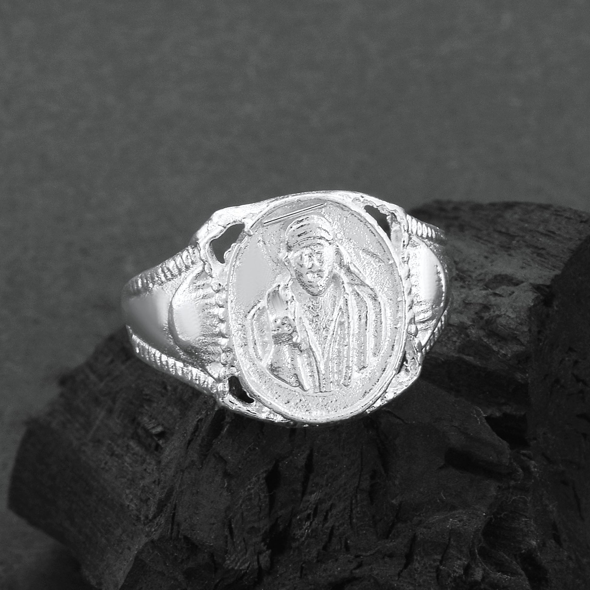 The ultimate spiritual finger ring, this ring is made with genuine Anti Tarnish Rhodium Silver plated Brass alloy. The extra e-coating makes sure that the finger ring will not fade or turn black easily. One of the most loved and adored image of SAI BABA. Finger ring made in cool and soothing Silver color. Thus this is a thoughtfully created meaningful bold finger ring, which is made with 100% anti-allergy,skin safe metal. It can be worn by both Men and Women of all ages, A very good gifting option, for all occassions.