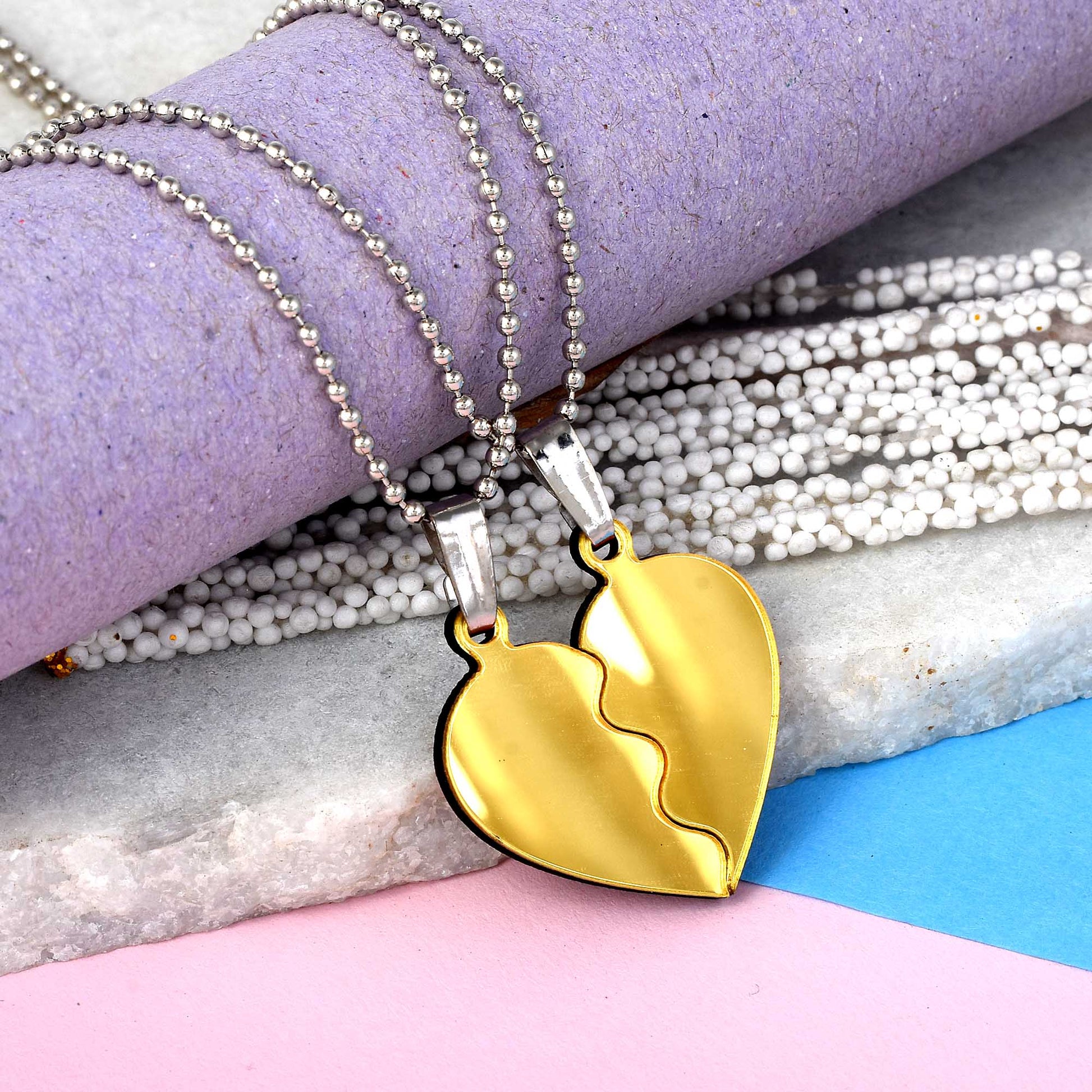 Gold Mirror Finish Two Parts Broken Heartshape Pendant Men Women