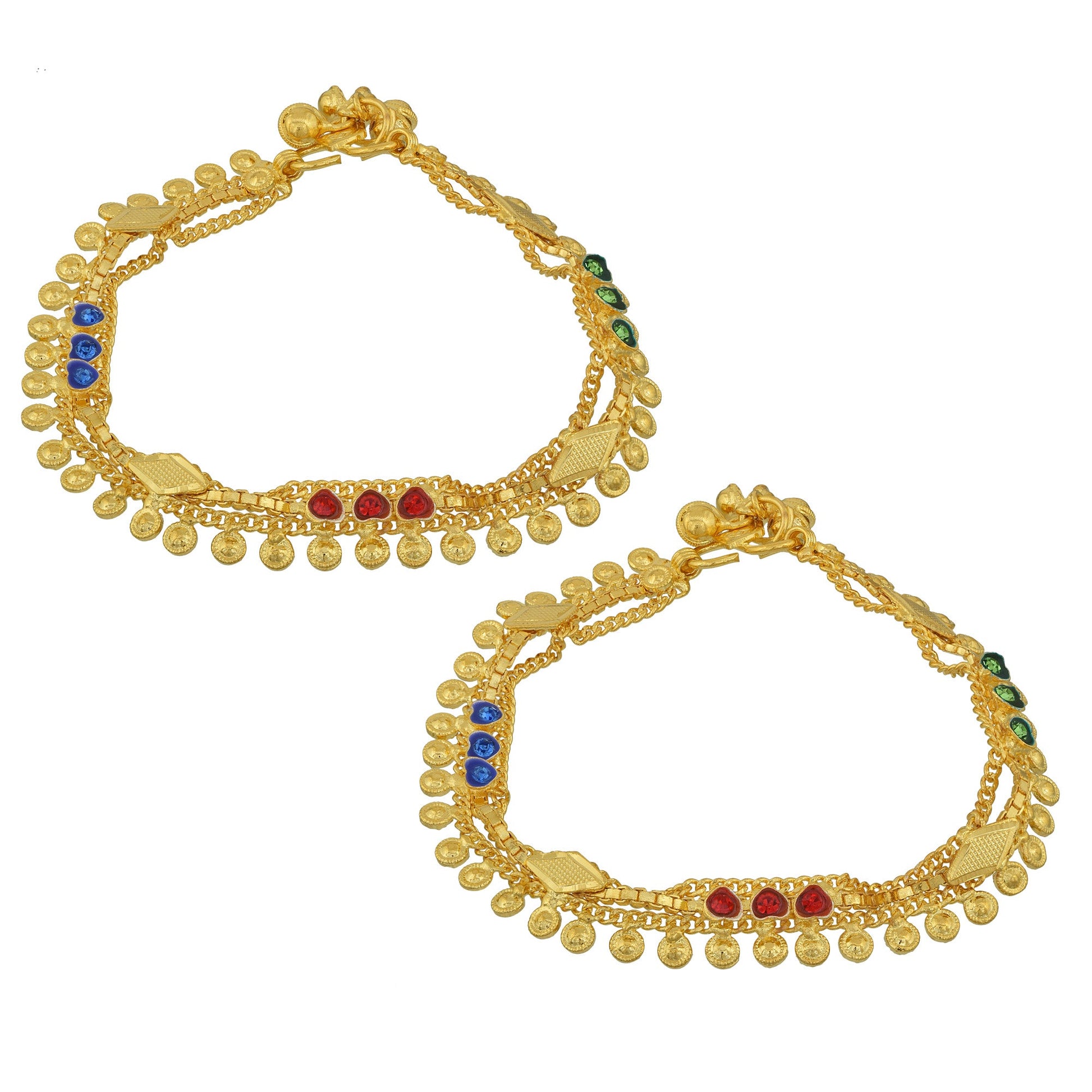 Gold Plated Brass Broad Meenakari Payal Pajeb Anklet