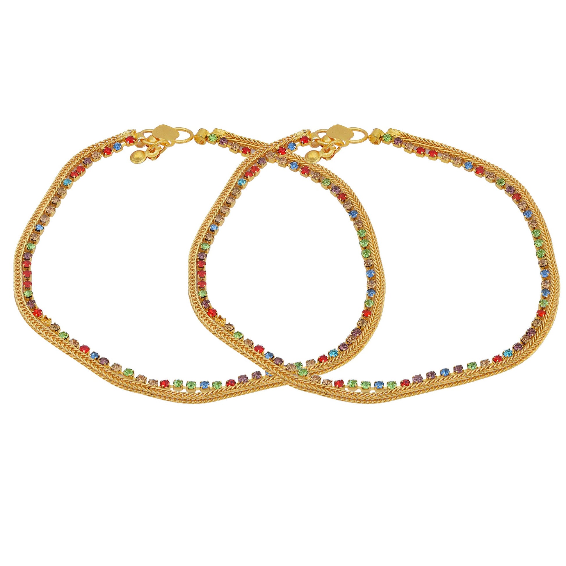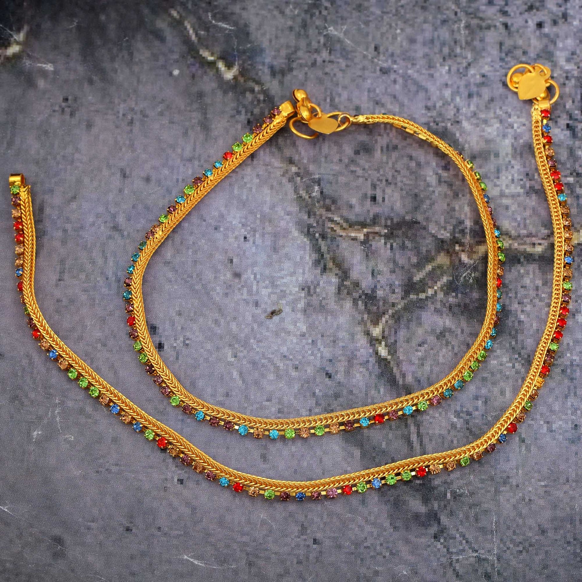 Gold plated Colourful CZ Payal Pajeb Anklet Women