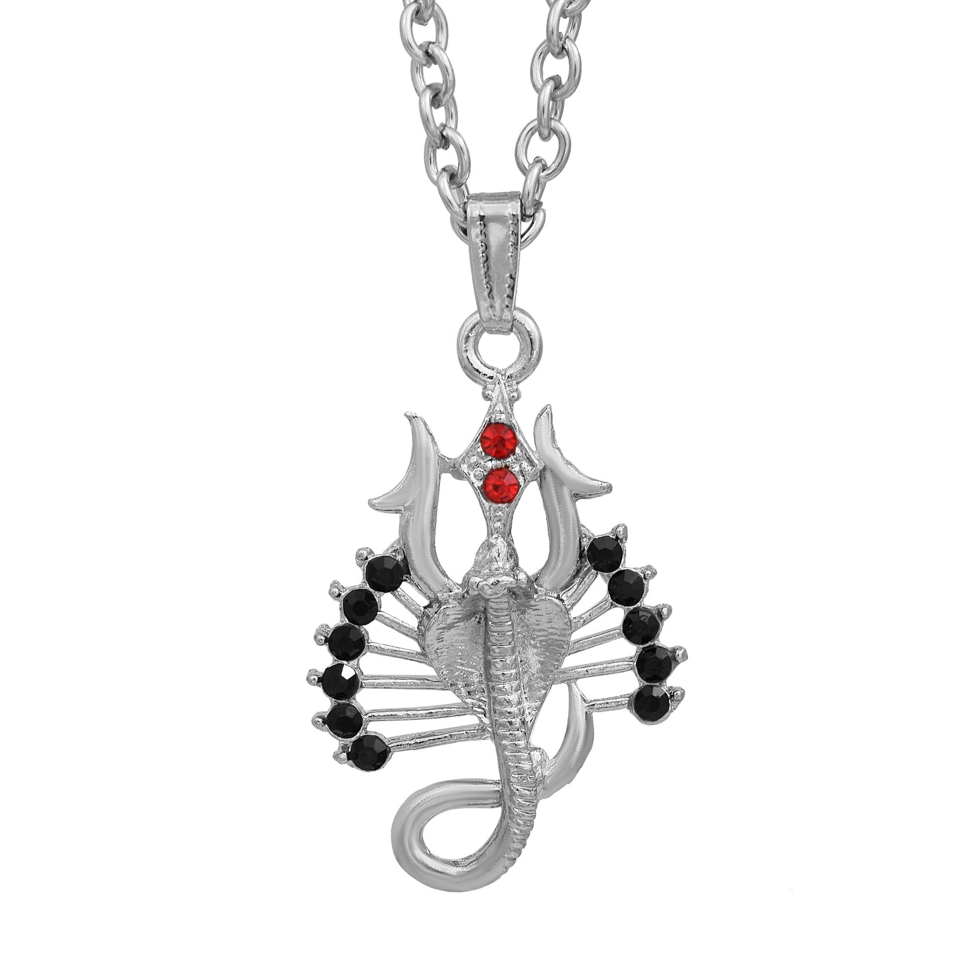 Silver Plated, Trishul Sheshnag Black Onyx Studded Fashion Spiritual Chain Pendant