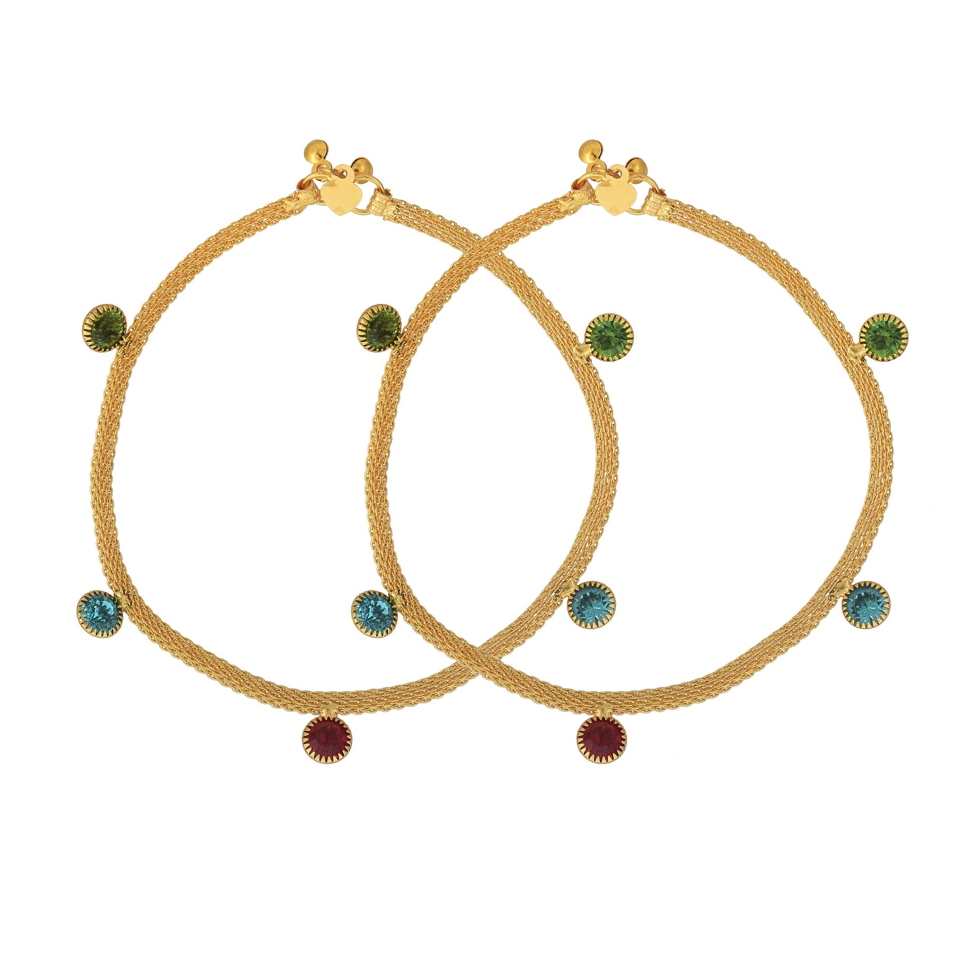 Gold plated, Single strand Colourful American Diamond studded Payal