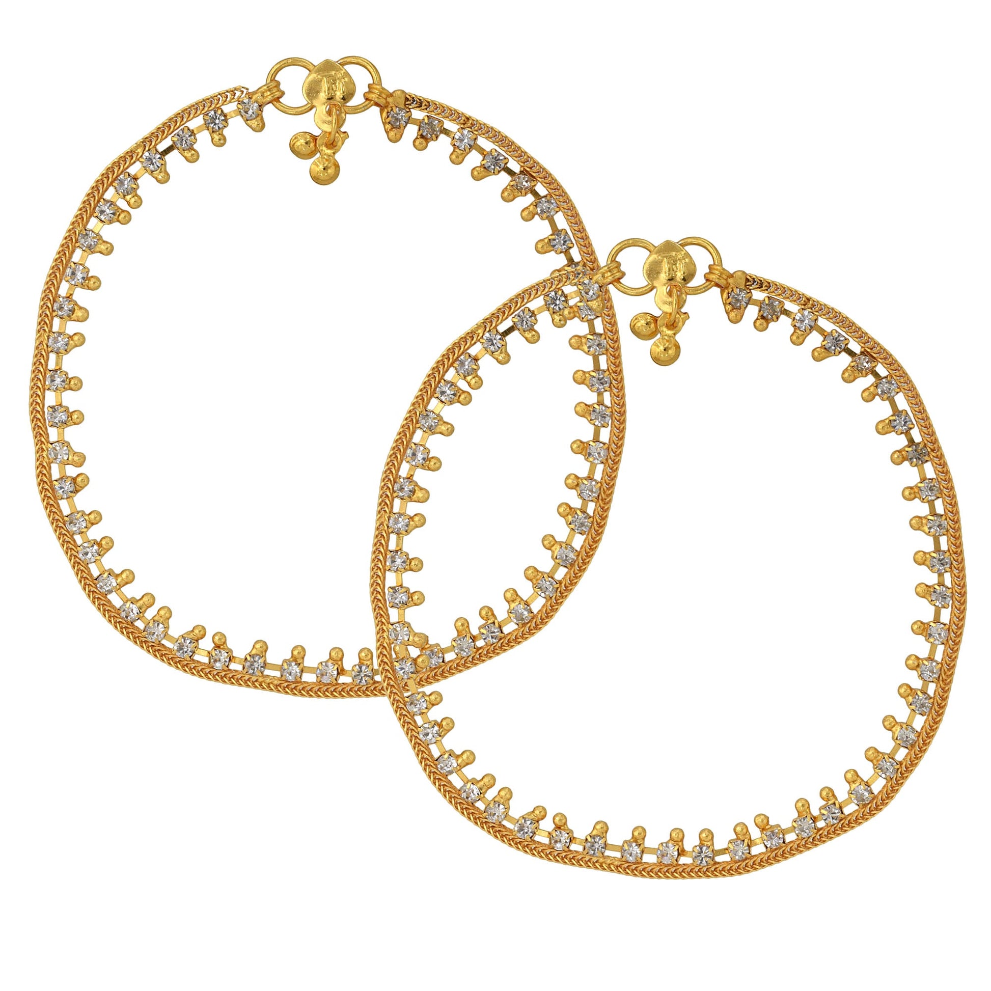 Gold plated White single line CZ Studded Payal Pajeb Anklet