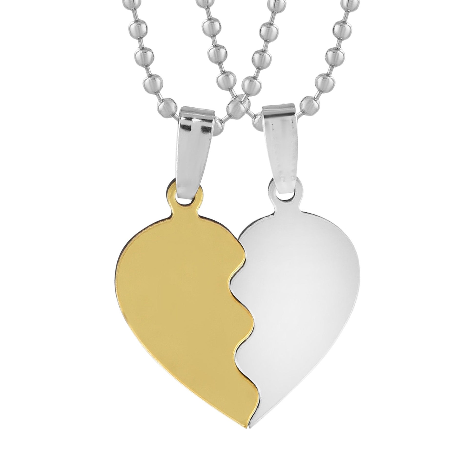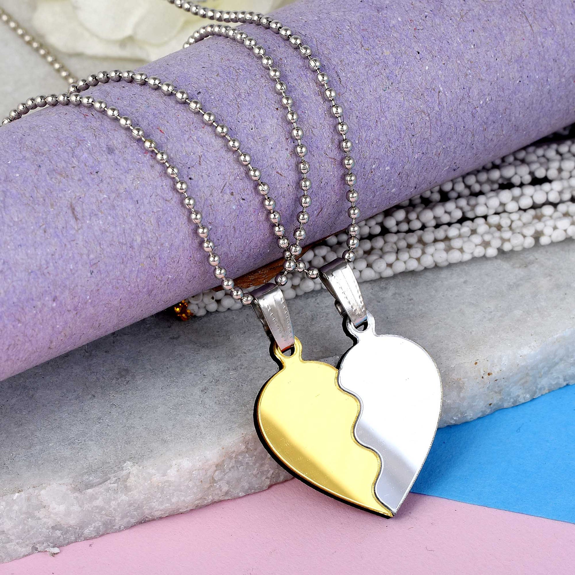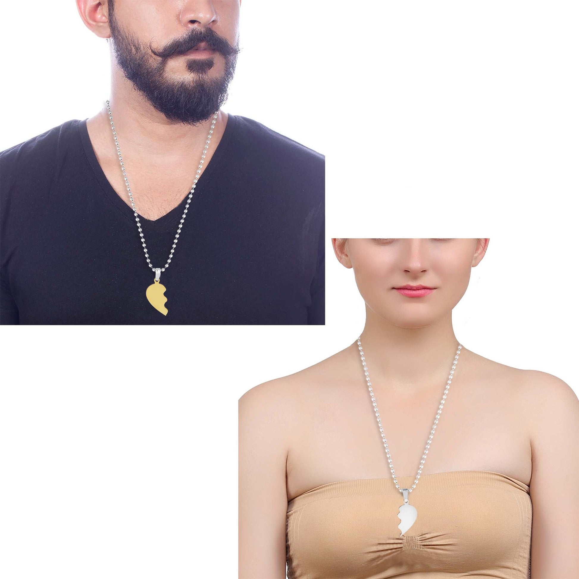 Gold & Silver Mirror Finish Two Parts Broken Heartshape Pendant