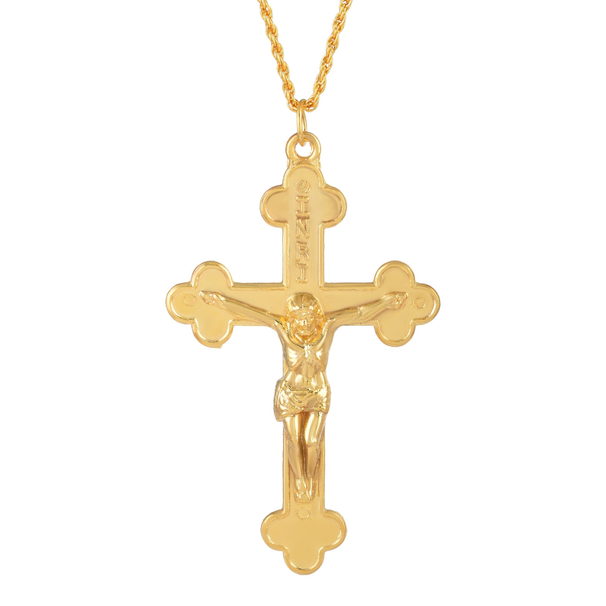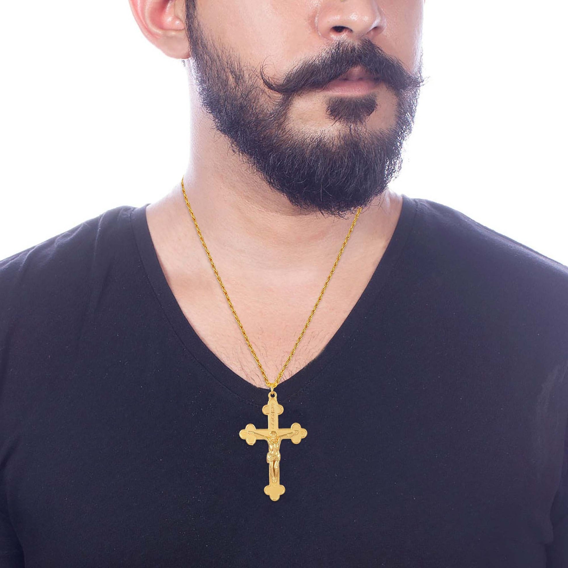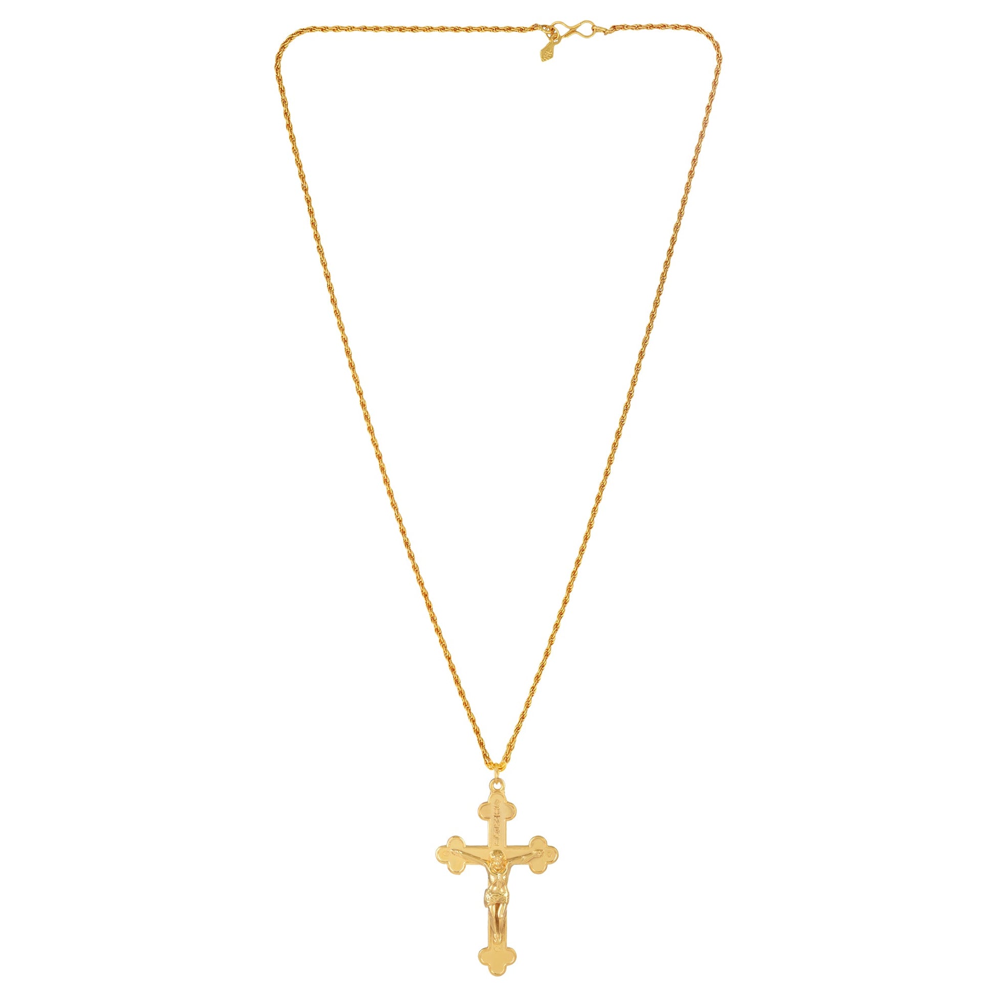 A Jesus Crucifix pendant, which invokes strong spiritual feelings. An attractive, awe inspiring classic design, it is hung on a 22 Inch Goldplated Rope chain, which comes as free.Thus can be worn inside or outside the dress. An all time, all occasion wear. An excellent gift on marriages, birthday's or anniversaries. A light weight, non allergic pendant.