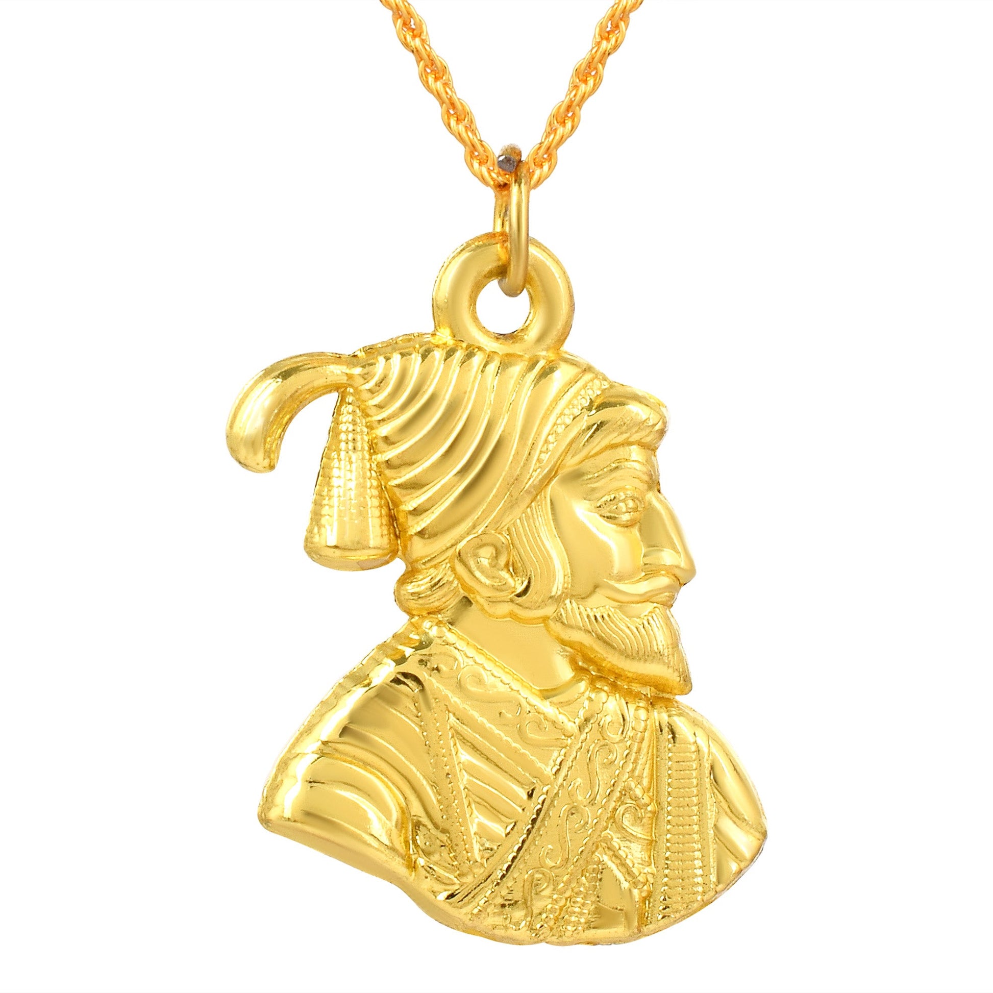 Micron Goldplated heavy Brass Both sides (Reversible) Shivaji Chain Pendant (PCMI5568)