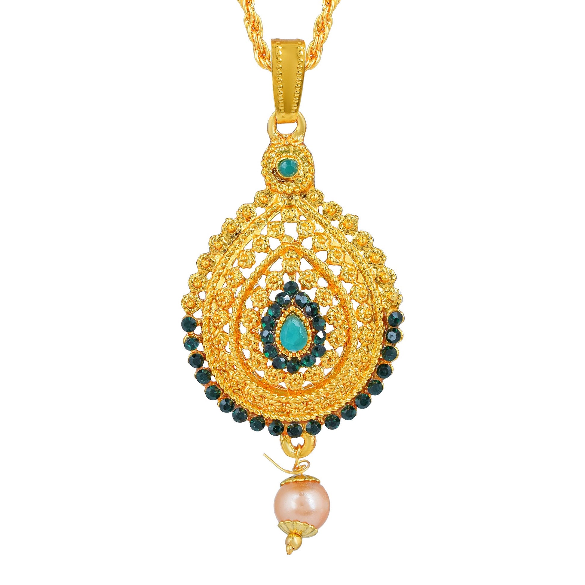 Brass Gold plated Green CZ Rasrawa Handmade Traditional Pendant