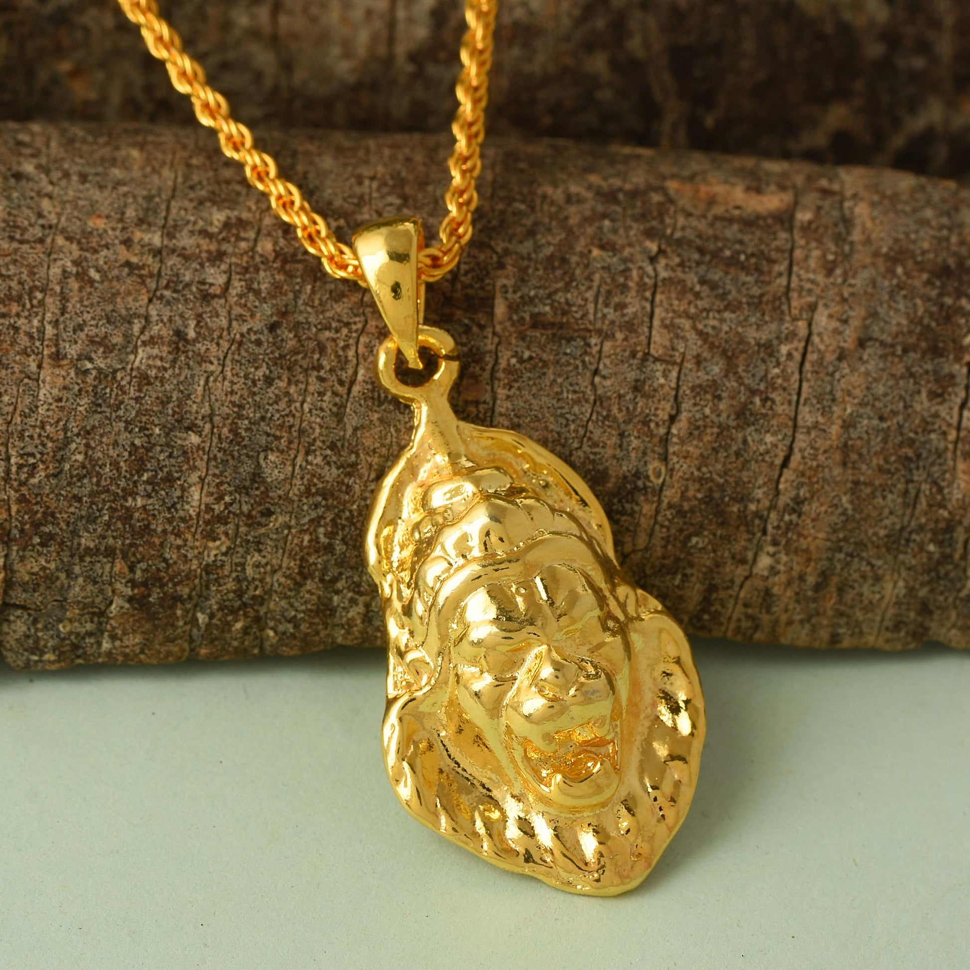 • Size: 5cm x 2cm. Weight: 15 Gms. Length: 25 Inches. Comes with Brass Goldplated Rope chain.
