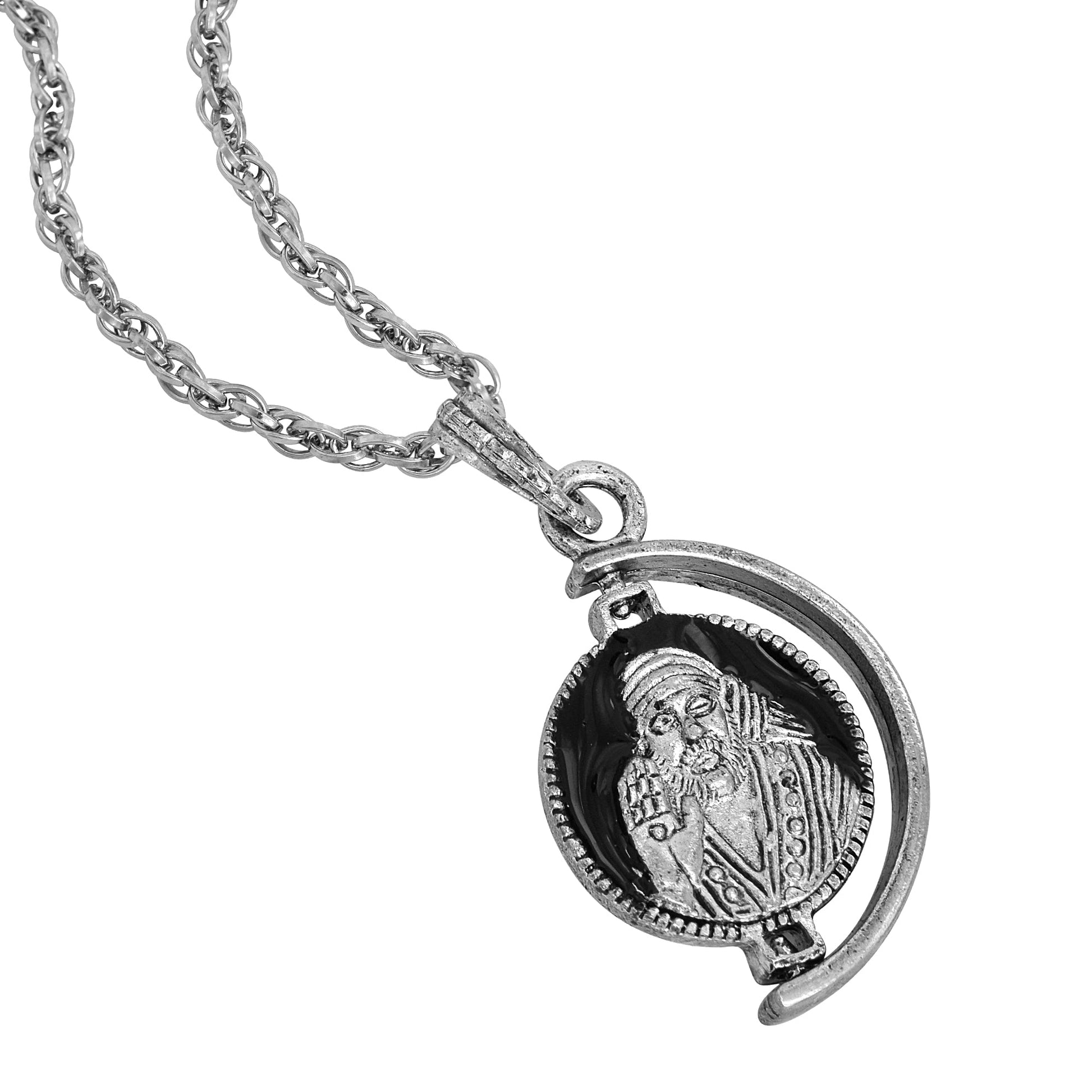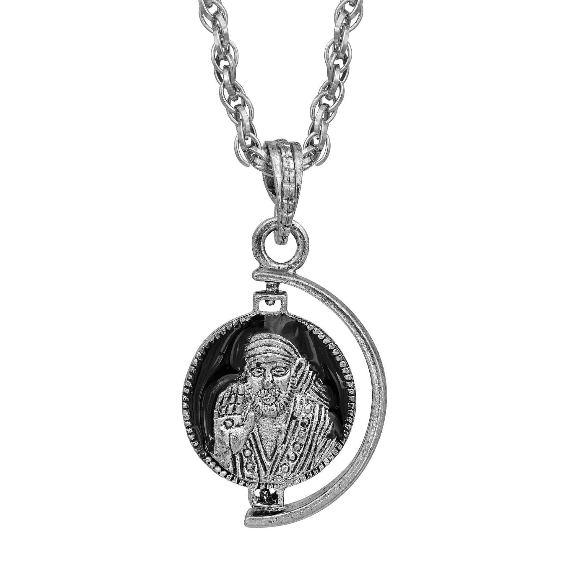 Oxidized Silver Plated round coin shape shirdi sai baba spiritual ethnic pendant