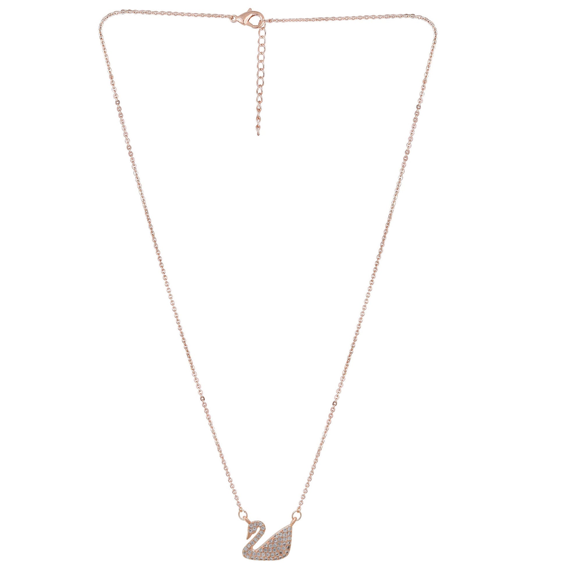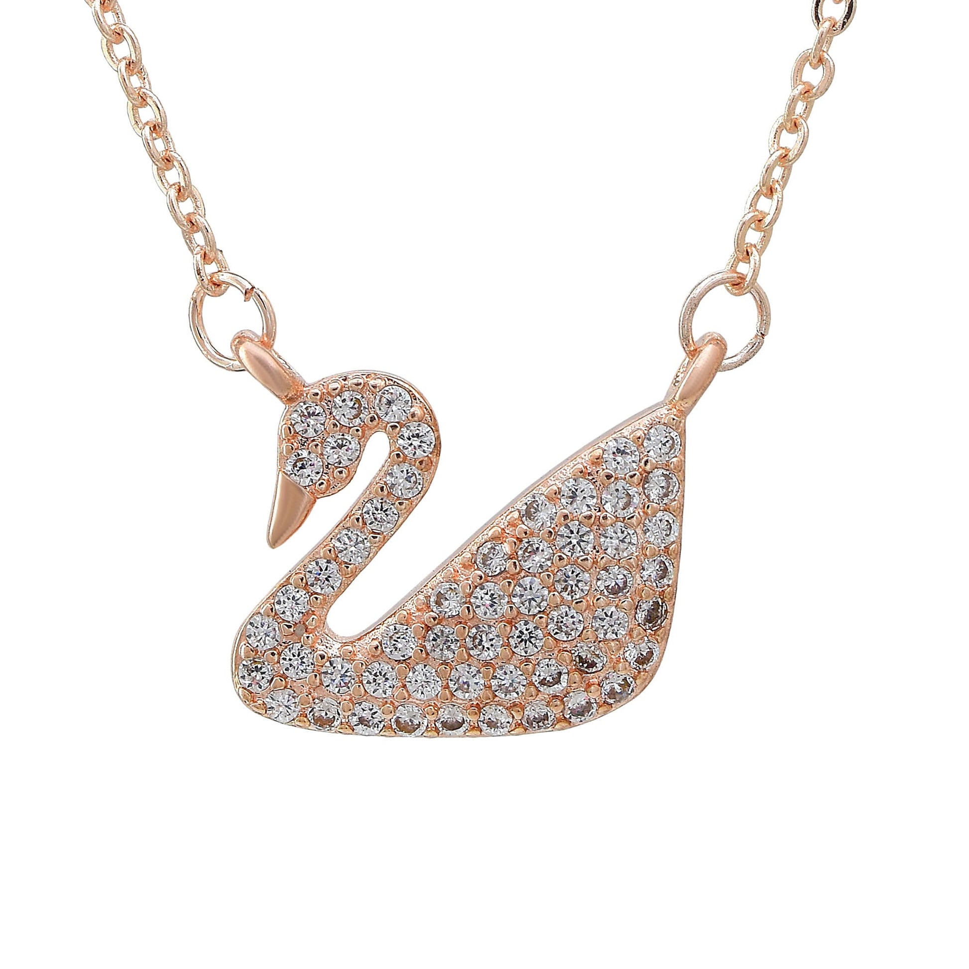 Rose Gold plated CZ studded Flamingo Swan high fashion chain pendant