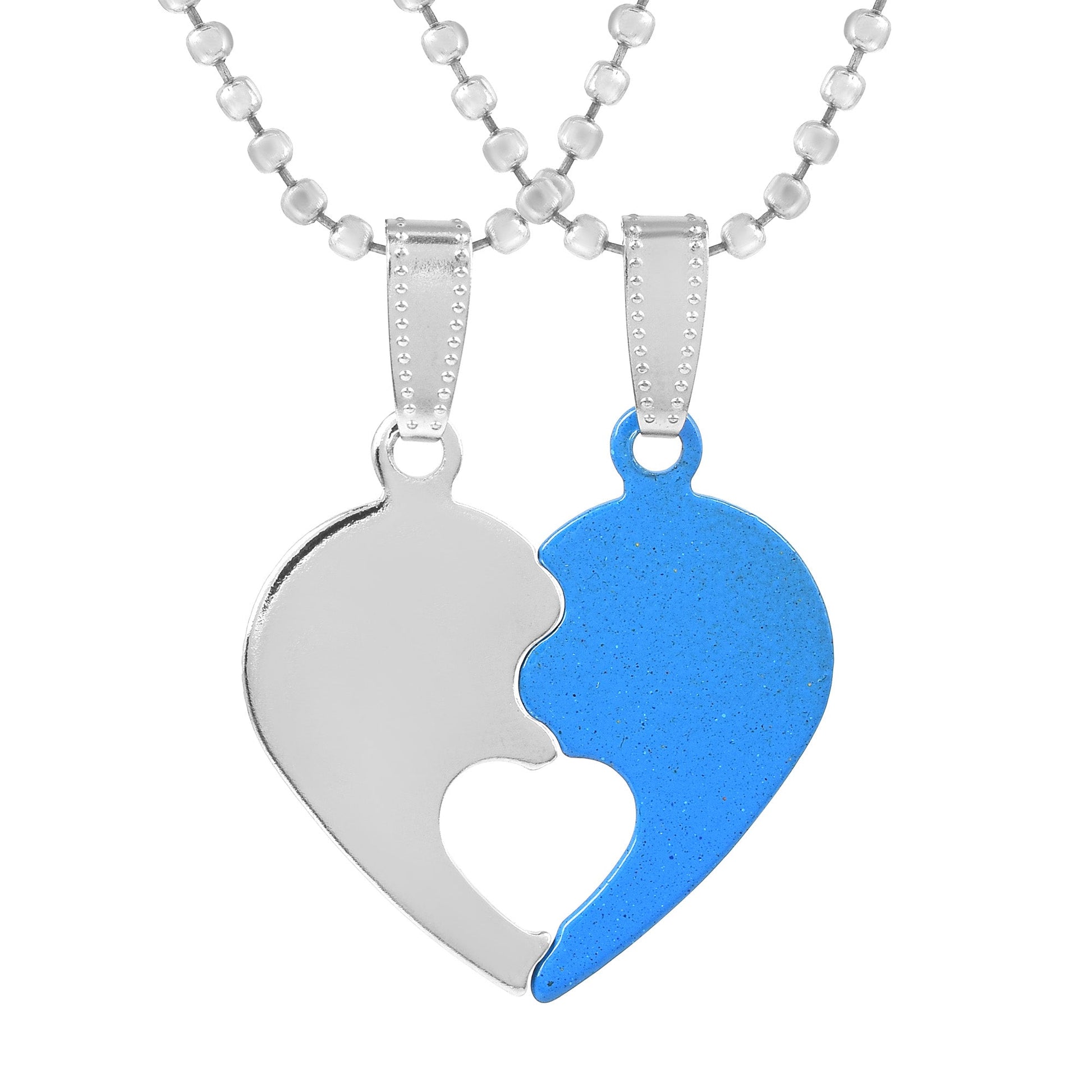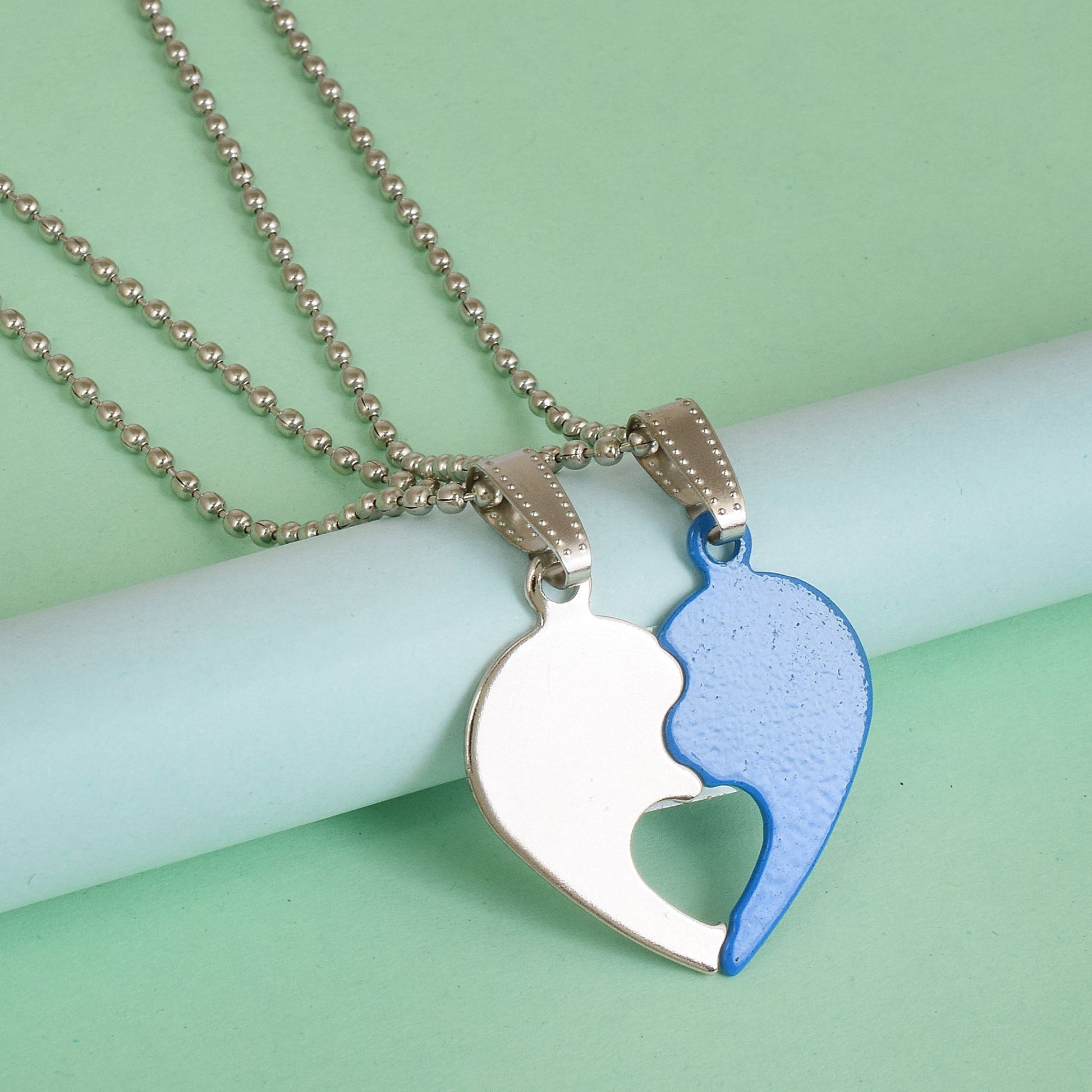 Silver and Blue Tone 2 parts Heartshape Love Chain Pendant