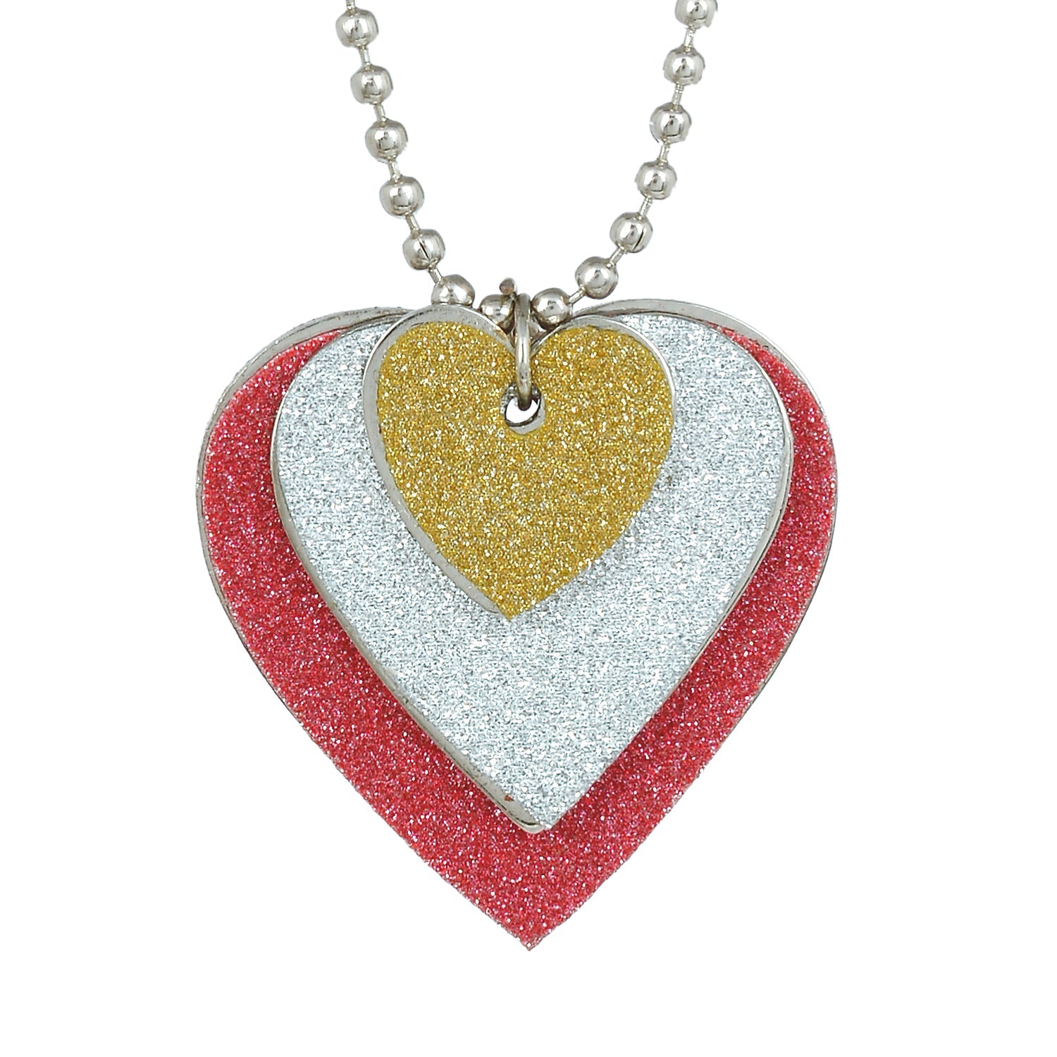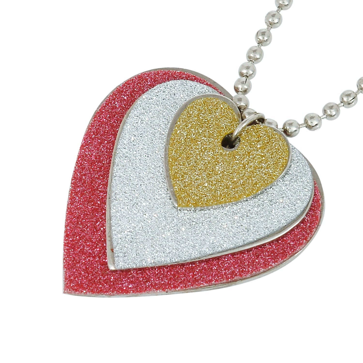 Silver plated 3 colour flat Faux Drussy Heartshape chain pendant