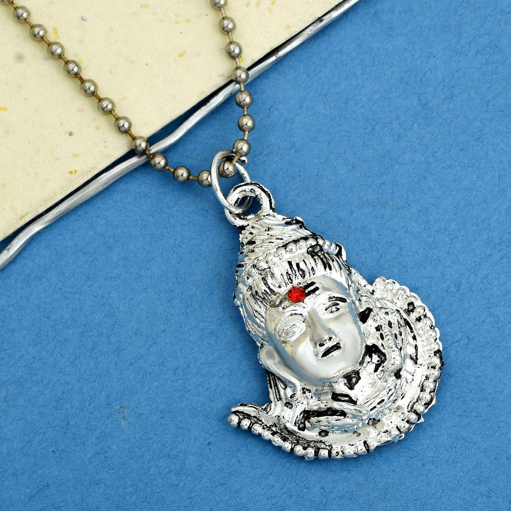 • Silver plated Mahadev Shiv Pendant. Comes with30 Inch long Steel ball chain.