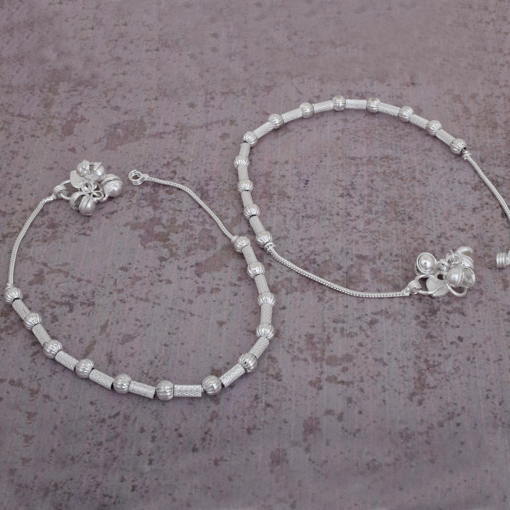 Silver Plated Brass, Ball and Bead design Fashion Payal Pajeb Anklet Women