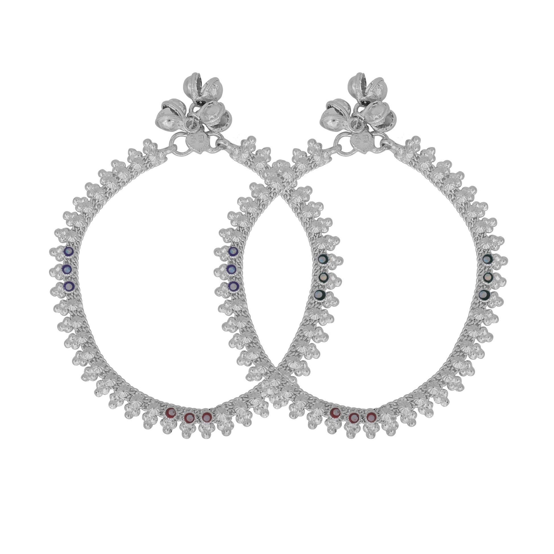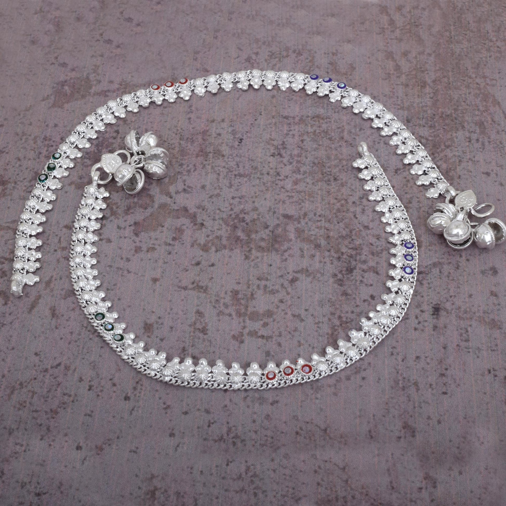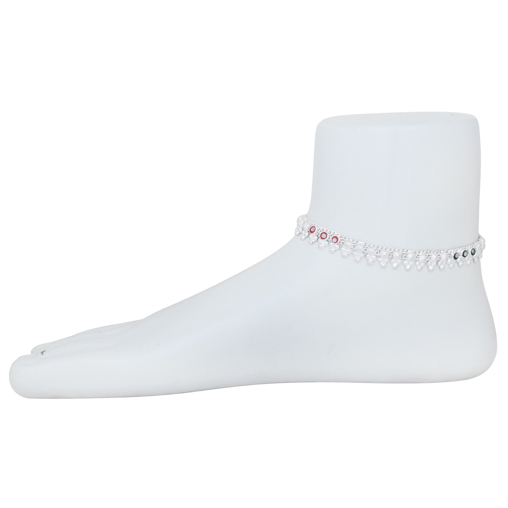 Silver plated brass, Colourful CZ studded, Mangal Kalash style Anklet