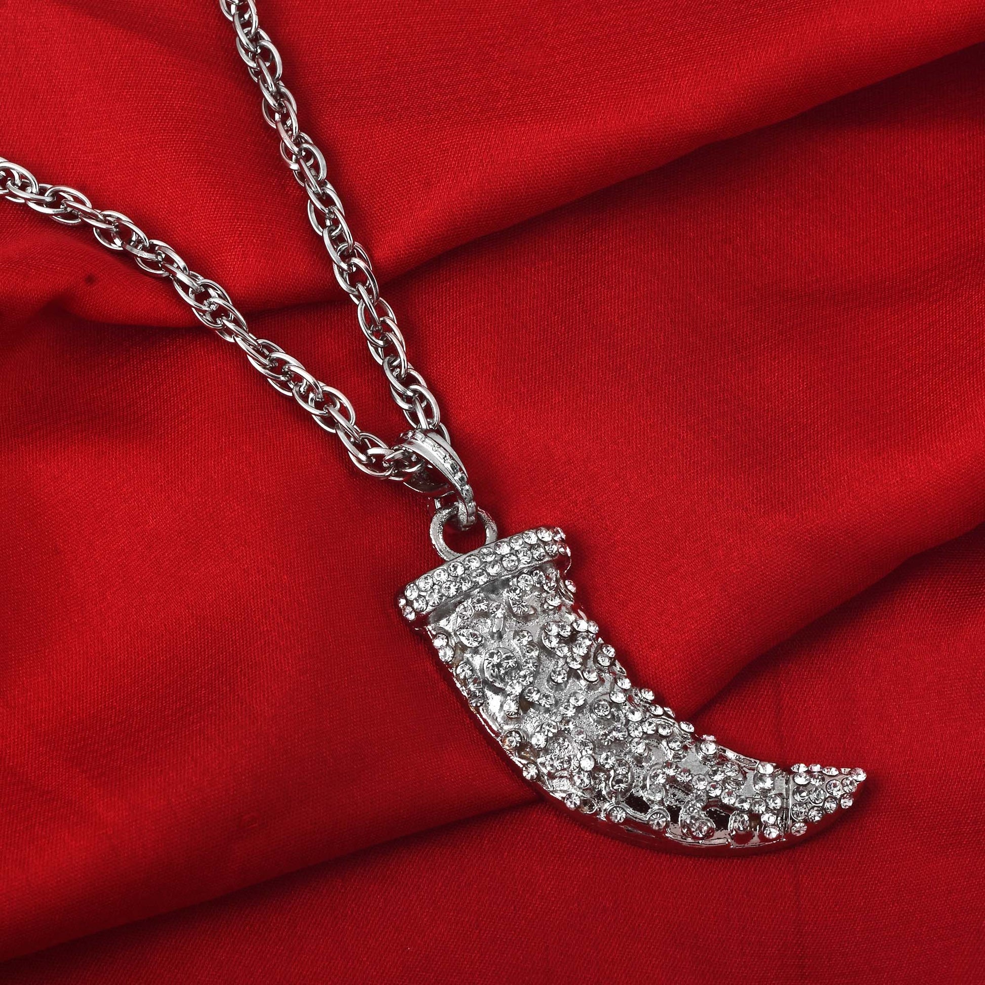 Silver plated Brass CZ studded Stylish Khukri design Fashion pendant