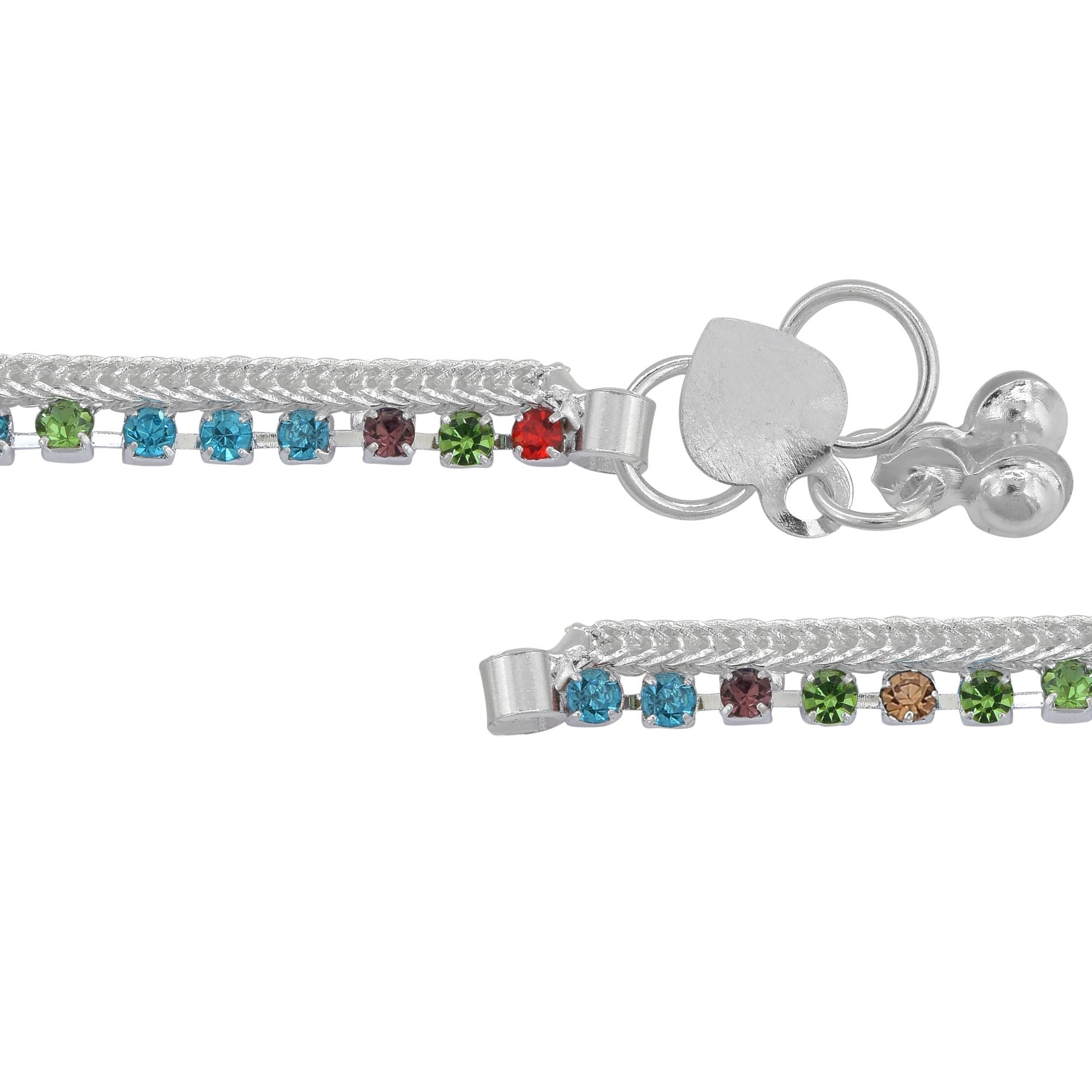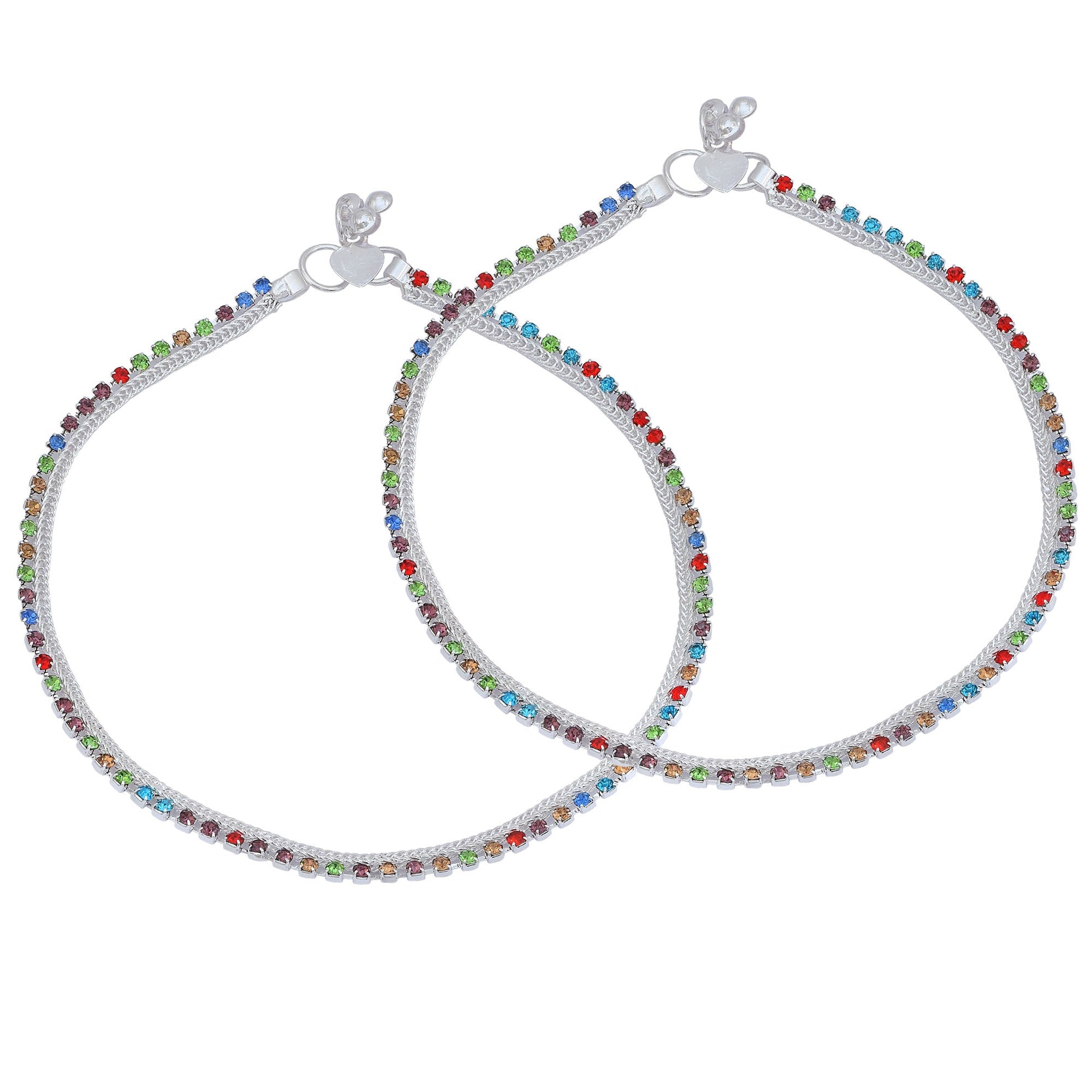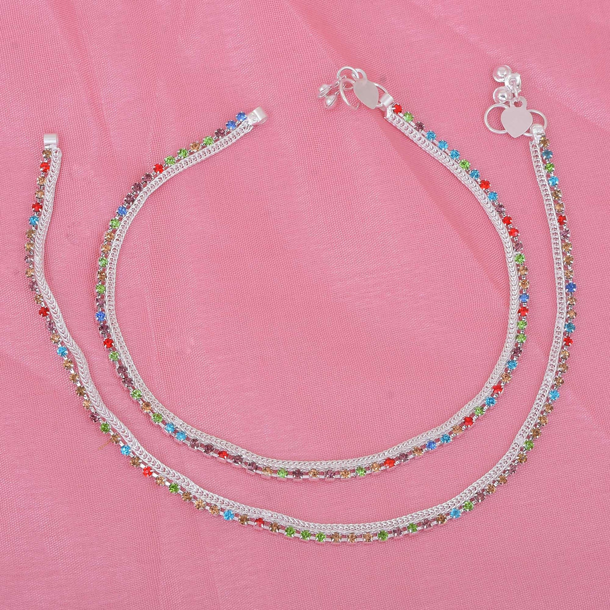 Silver plated Colourful CZ Payal Pajeb Anklet Women