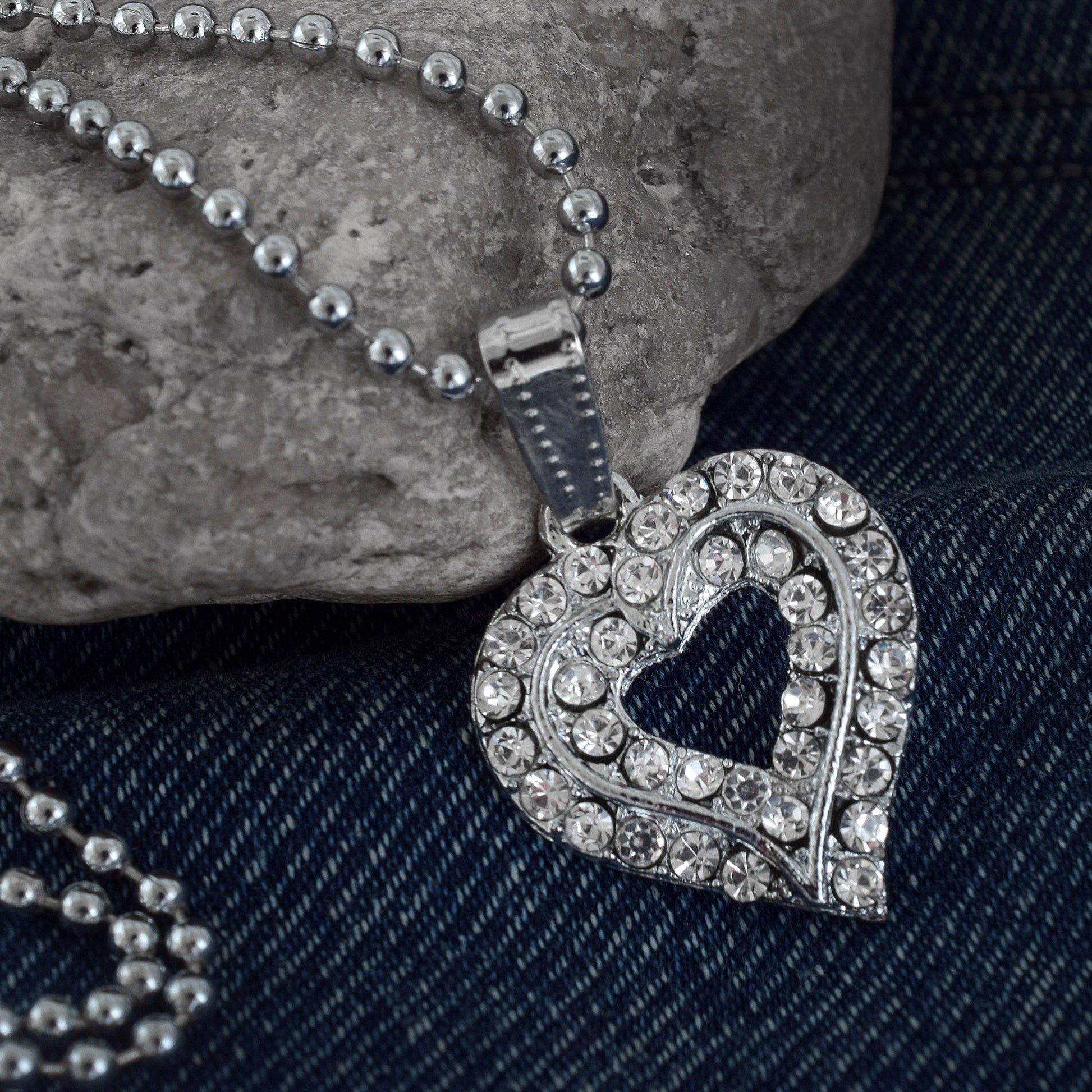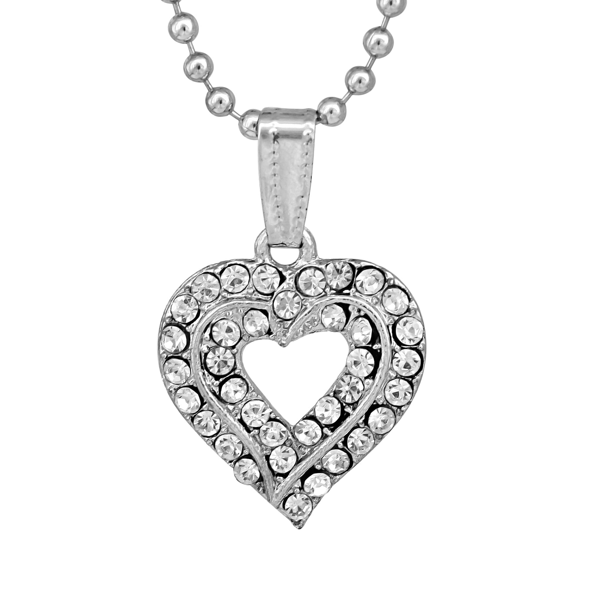 Silver plated CZ studded Heart in Heart shape Fashion pendant