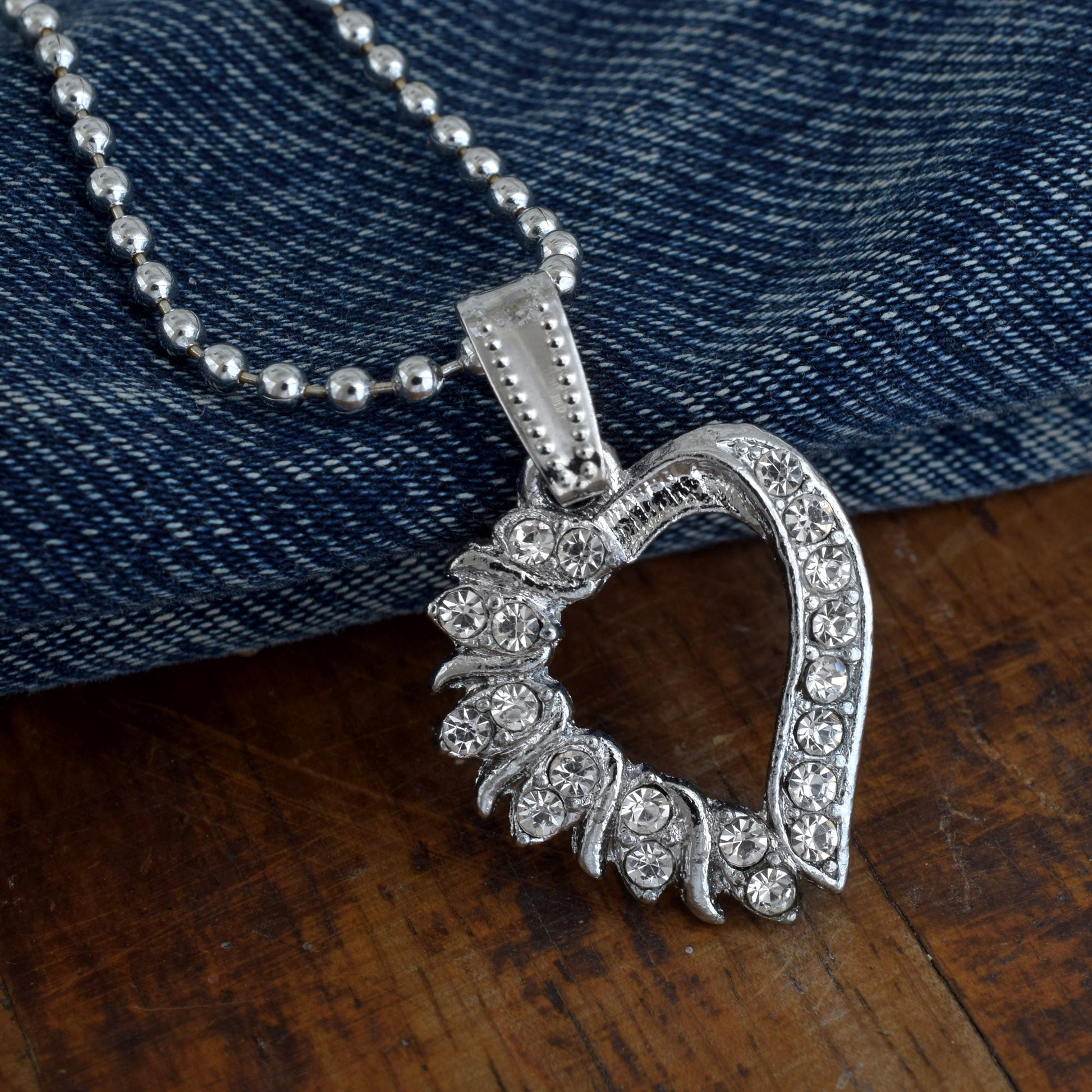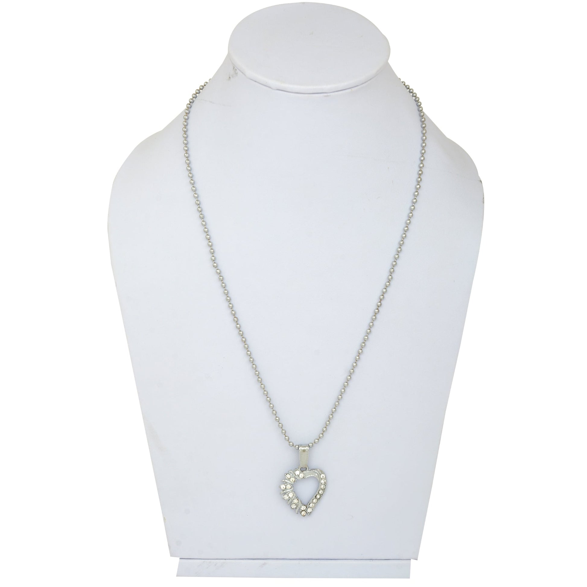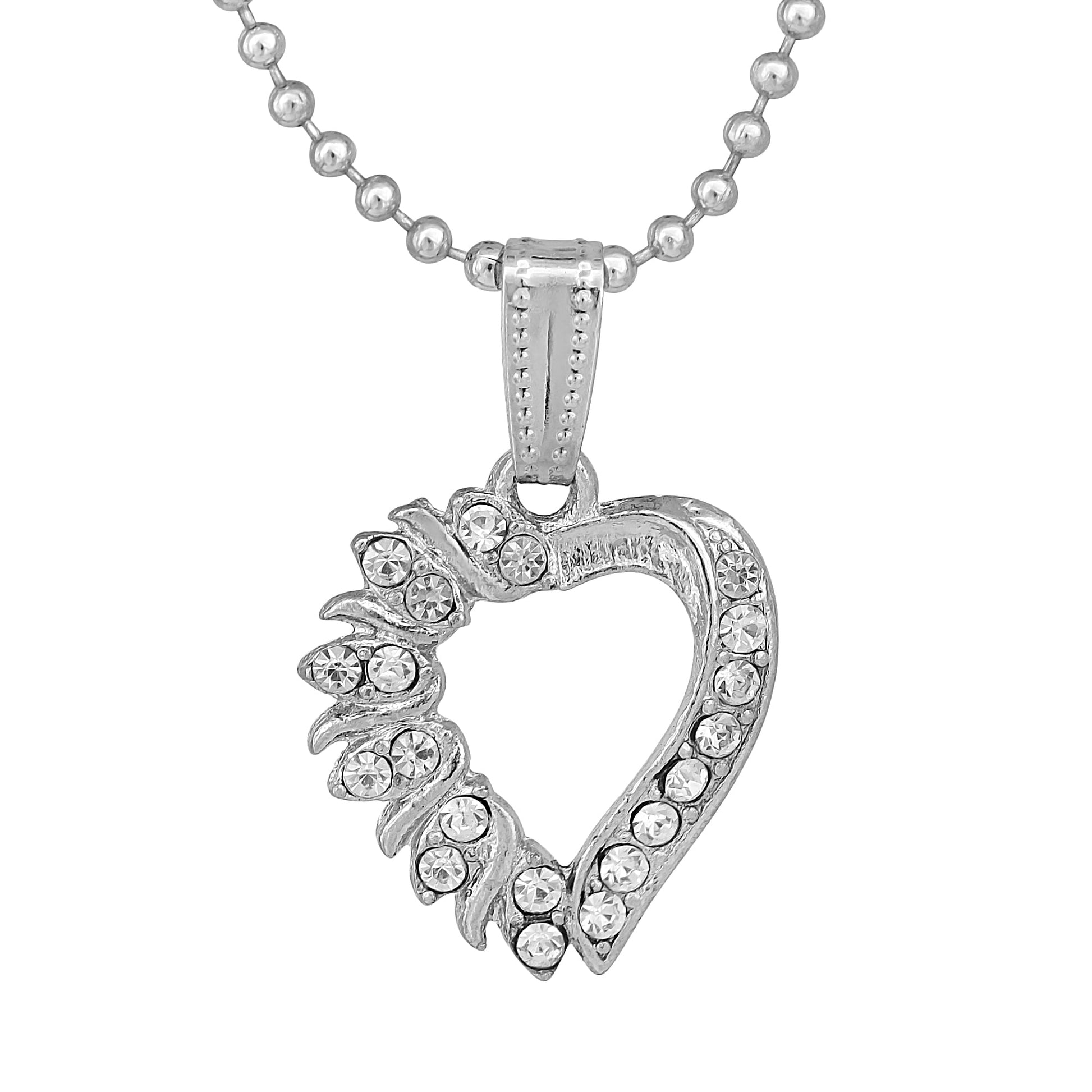 • Silver studded, CZ studded, Heart shape pendant. 1 Inchx1 Inch pendant, with 10gm weight, with 26 Inch long Stainless steel Ball chain.