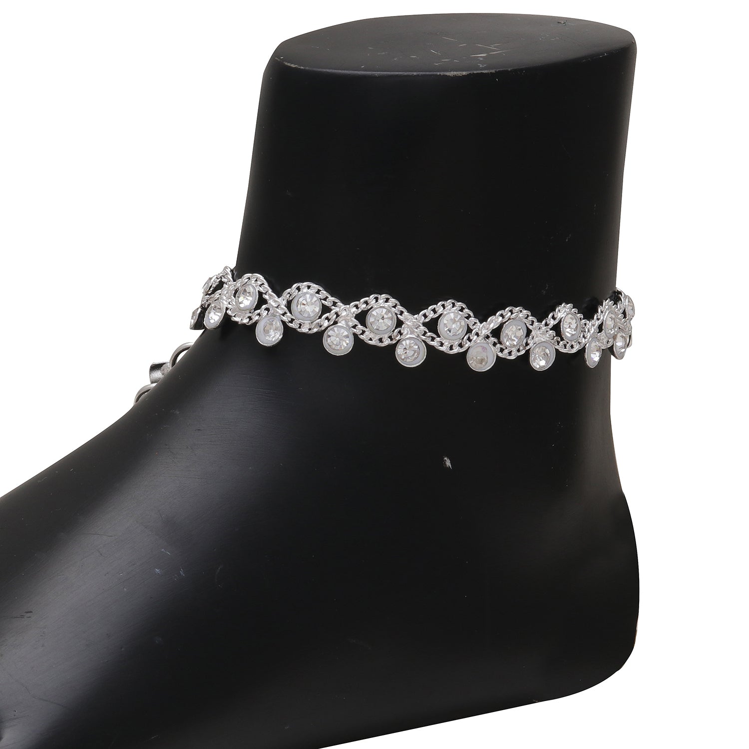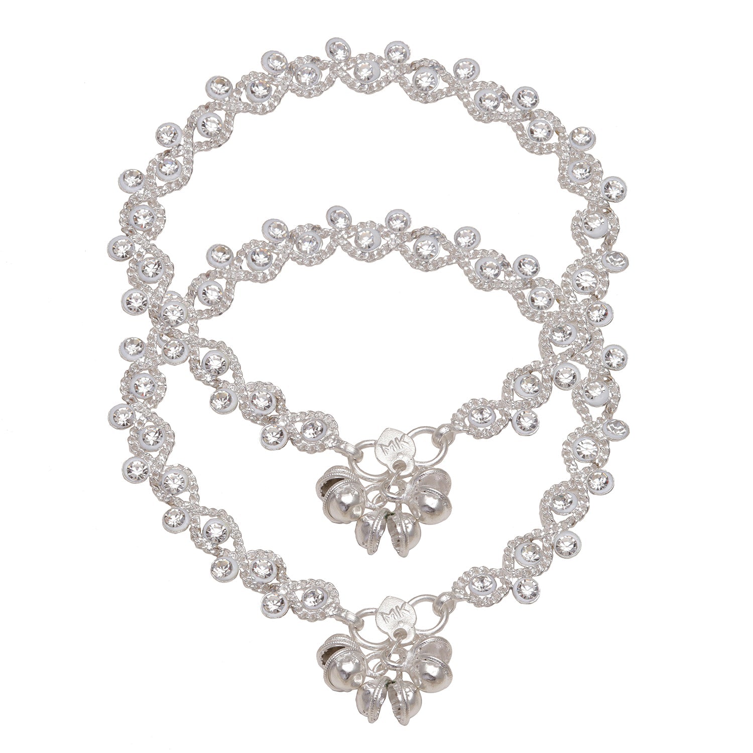 Silver plated CZ studded Stylish Elegant Ethnic traditional Bridal Wedding payal pajeb Anklet Women