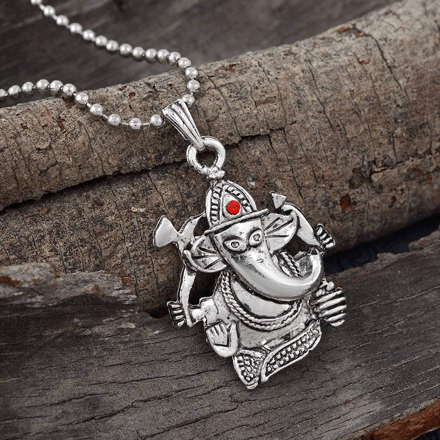 A stylish Ganesh spiritual pendant, Ganesh in Silver plating, a designer created exclusive and rare design. Cute and small pendant, this brings attention and appreciation, at same time. An excellent gift as well.