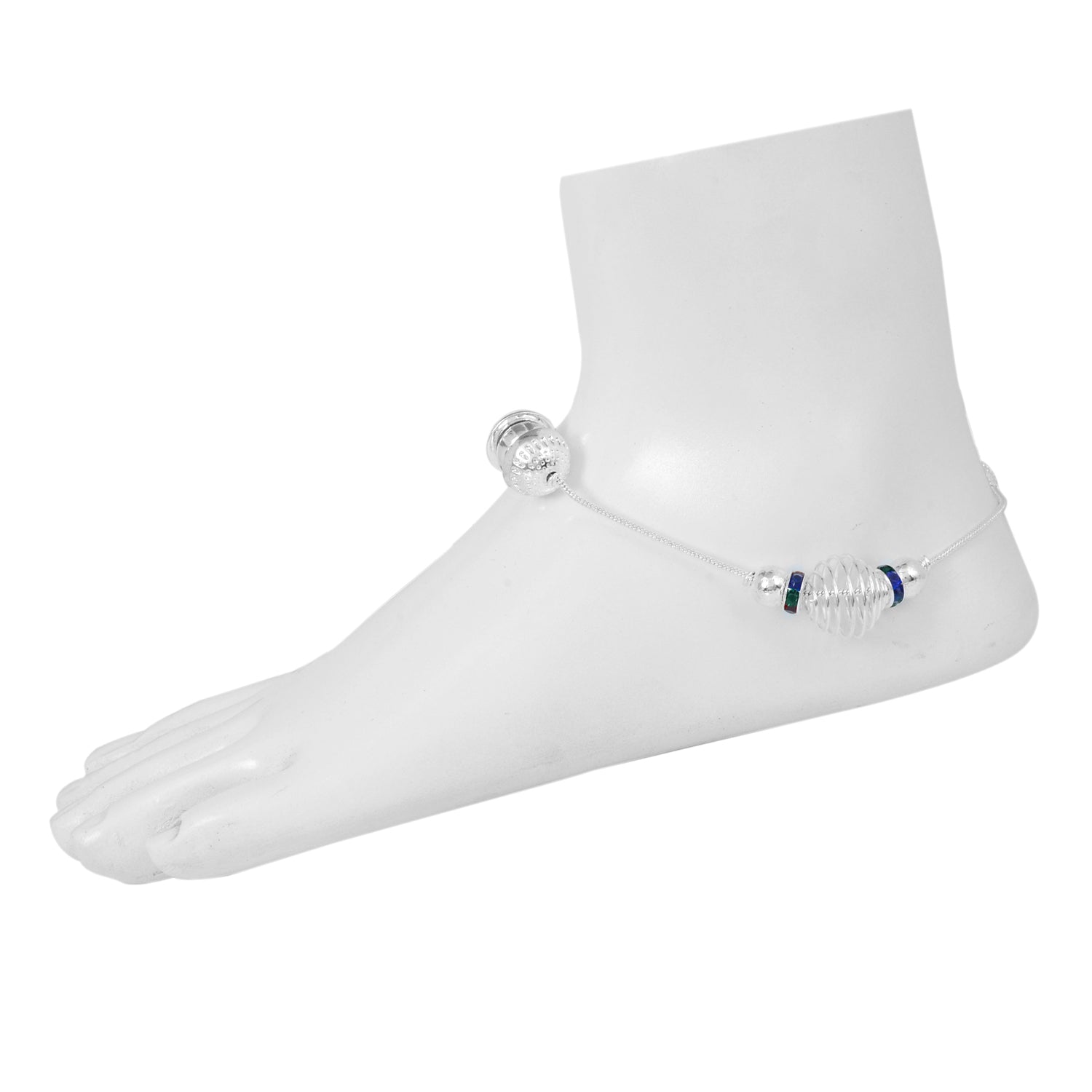 Silver plated light weight Meenakari dholki pattern jewellery Anklet