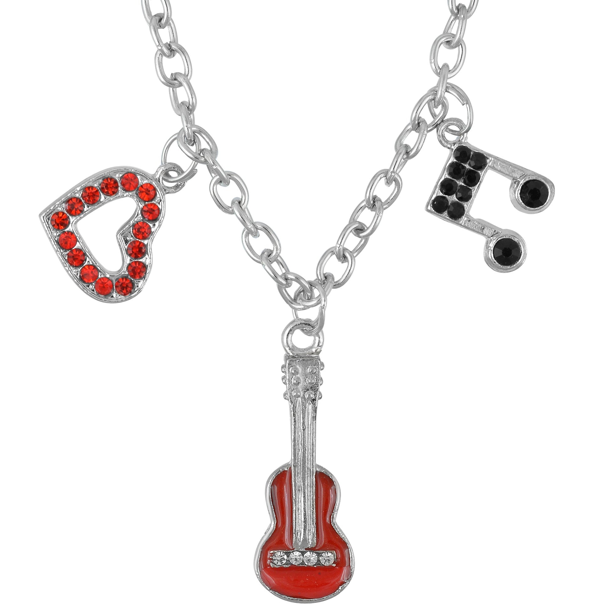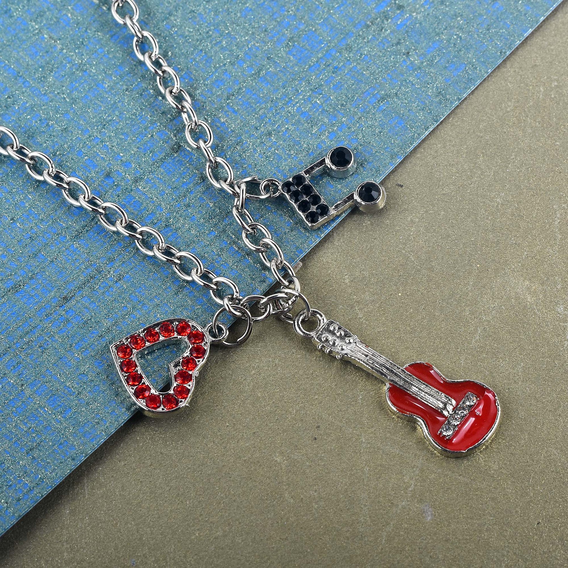 • Red CZ studded Heartshape and Guitar, with black musical notes.