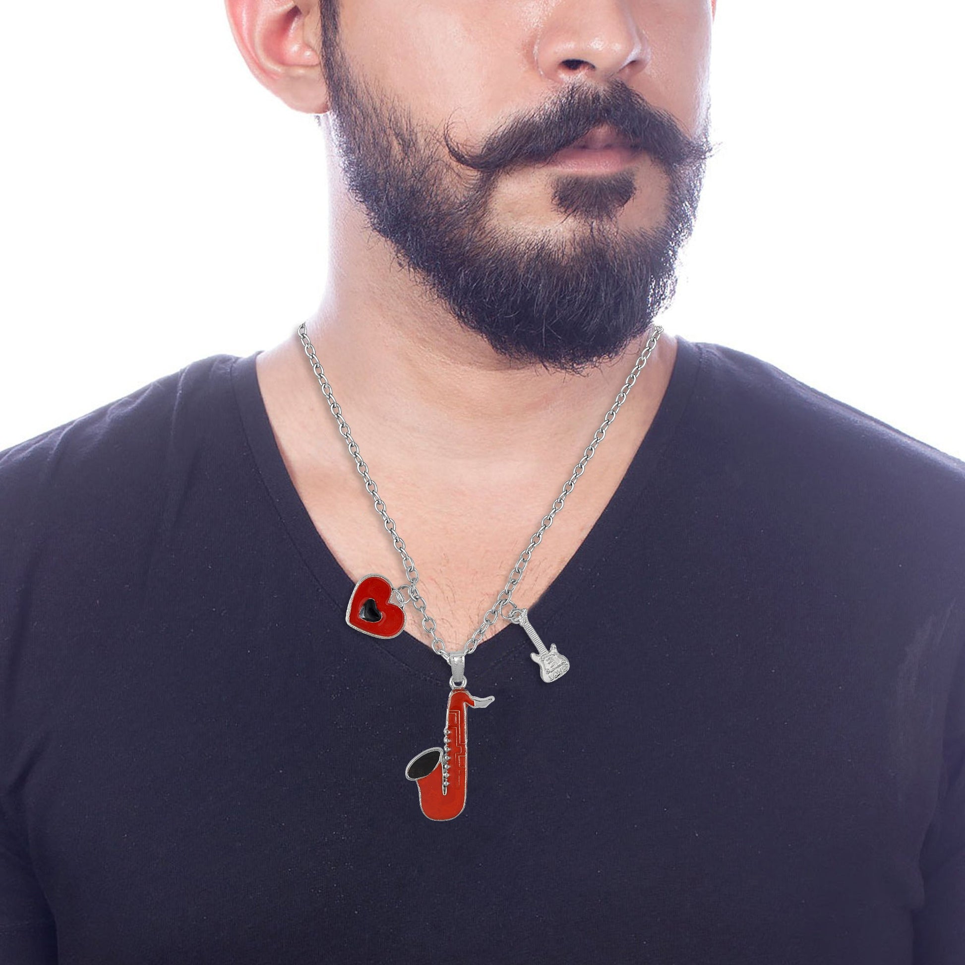 A Silverplated pendant, this is a Red Enamelled heart/ Saxophone design. Extremely light weight, the pendant is ideal casual wear product. An excellent self use, as also a wonderful gift option to someone you love. Comes with a 16 Inch steel chain.