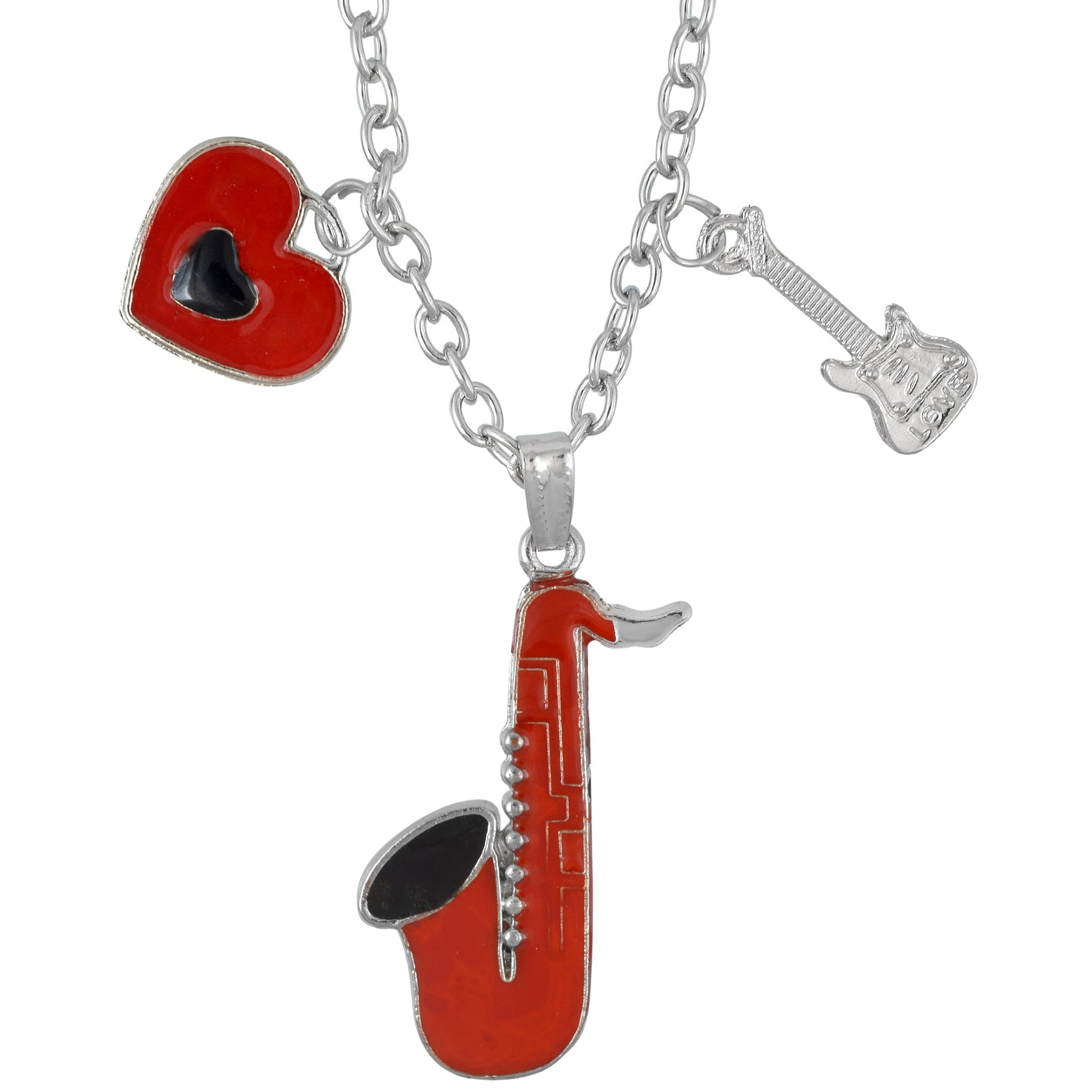 Silver plated Red heartshape, Saxophone, guitar Fashion pendant
