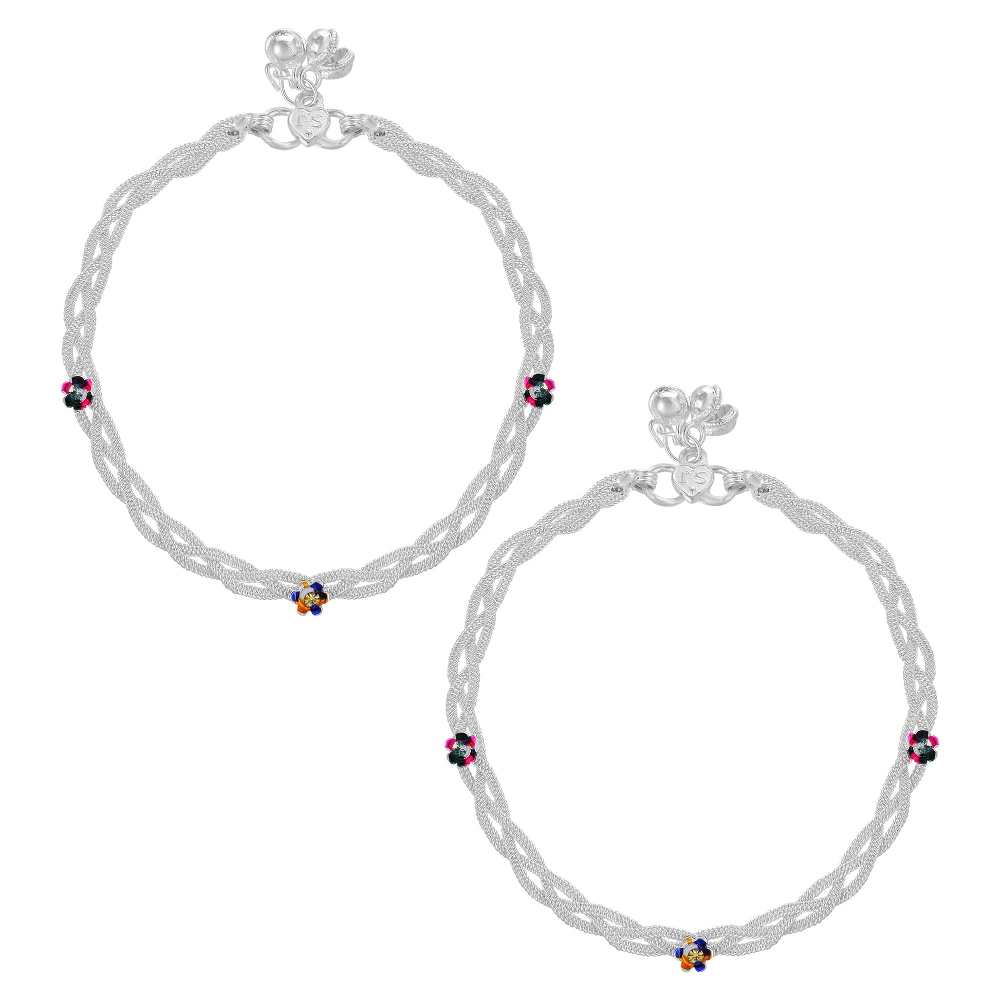 Silver plated, double strand, Payal, Pajeb Anklets Fashion