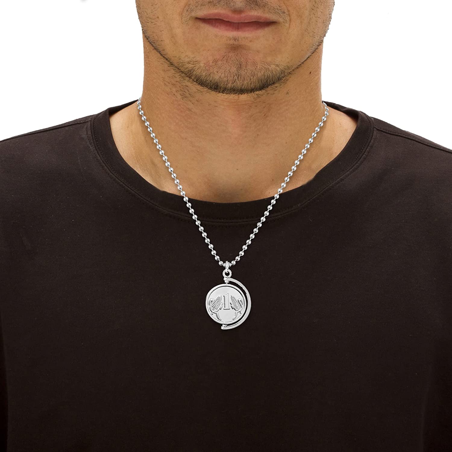 Made with Rust proof Stainless steel, this reversible both side pendant has One Rs on one side and A flying bird on other side. It symbolises wealth and clean atmosphere, in these busy times. The pendant is an excellent wear at all casual occasions like parties, discos, colleges, evening wear, Office wear etc. Looks good on both Men and Women.