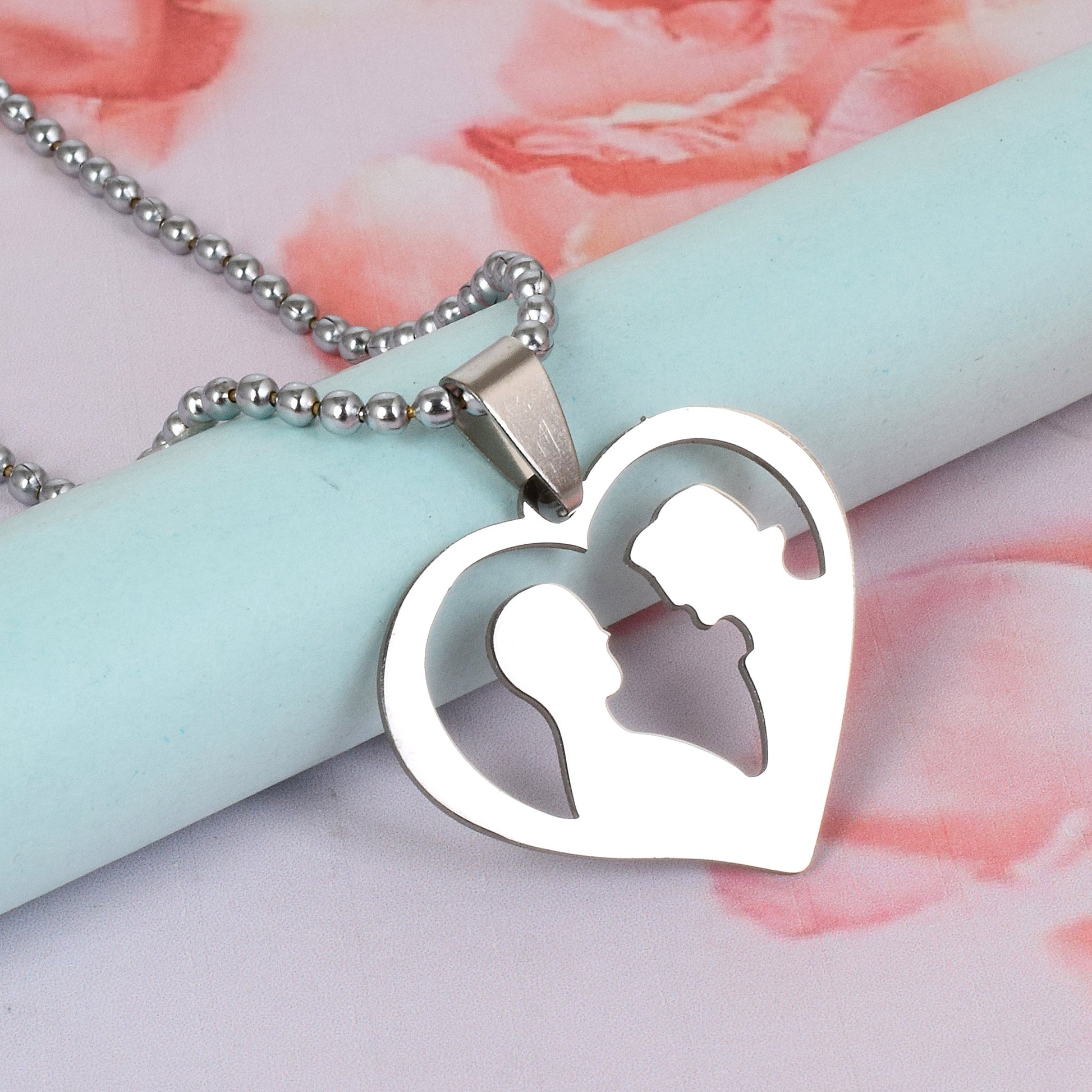 Silverplated Love Couple Heartshape Love Chain Pendant